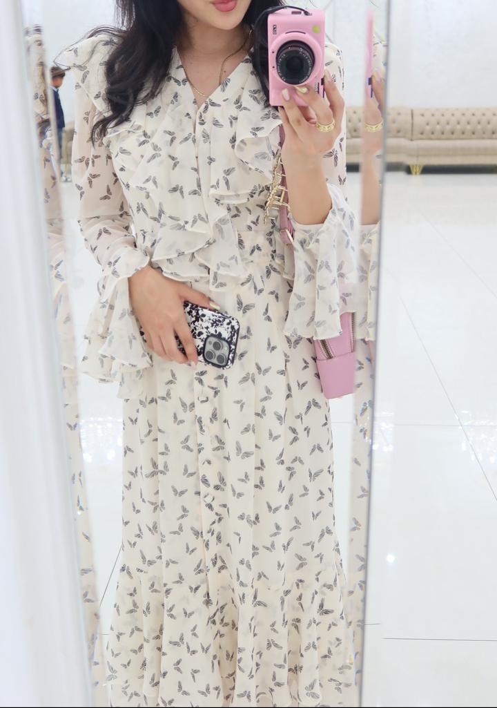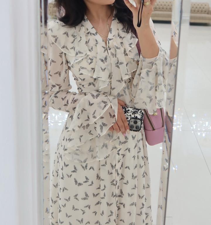 Нежное и женственное платье из лёгкой струящейся ткани с изящным принтом бабочек. Модель с рюшами и воланами красиво подчёркивает силуэт✨ Артикул: 559467