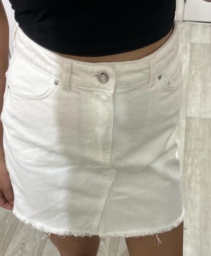 Юбка мини белый джинсовый, одевала пару раз, в хорошем состоянии,размер хс но думаю на с ку тоже подойдут. Артикул: 559479