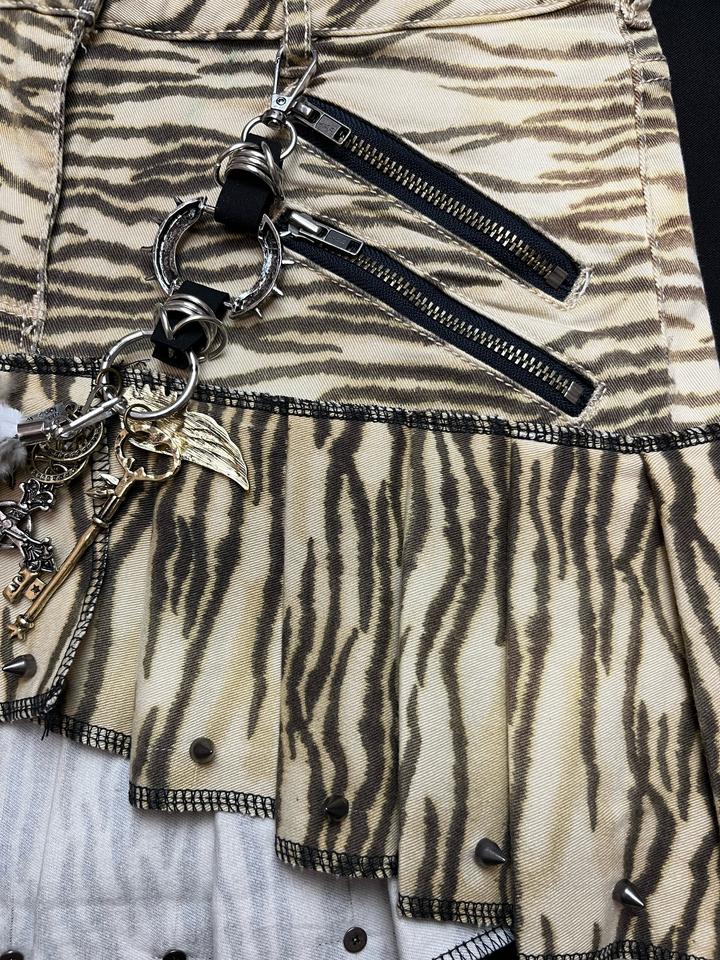 Tiger print asymmetrical studded beautiful keychain mini skirtS