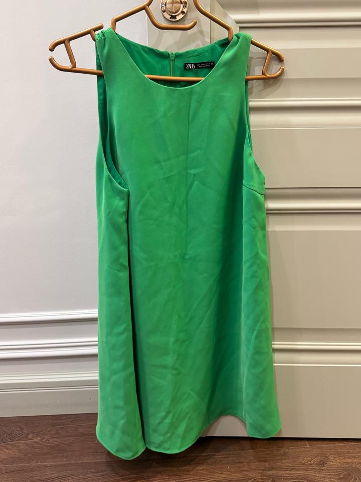 ZARA | базовое зелёное платье Очень стильное и лаконичное платье 💚 Свободный крой — сидит красиво и не сковывает движения ✔️ Подойдёт на каждый день / прогулки / встречи ✔️ Лёгкая ткань, комфортно носится ✔️ Сочетается с каблуками, кедами, пиджаком Можно носить: — как платье — как тунику с джинсами / шортами Размер: L (идёт свободно) Состояние: отличное Артикул: 559618