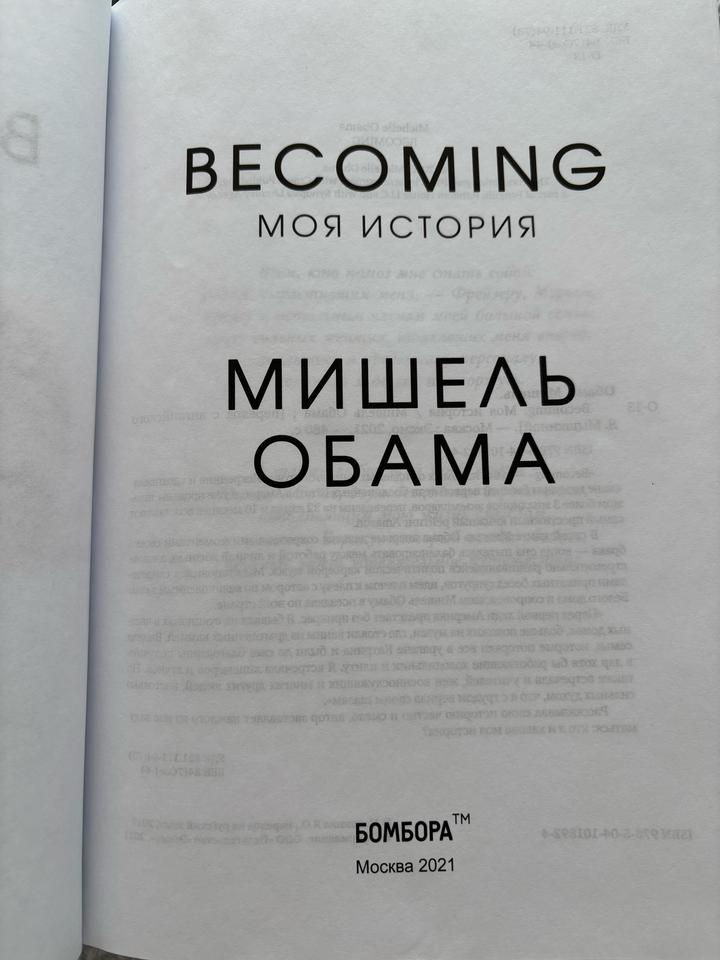 Книга Моя история. Мишель Обама. Издательство Бомбора. Покупалась в Марвин. Артикул: 559624