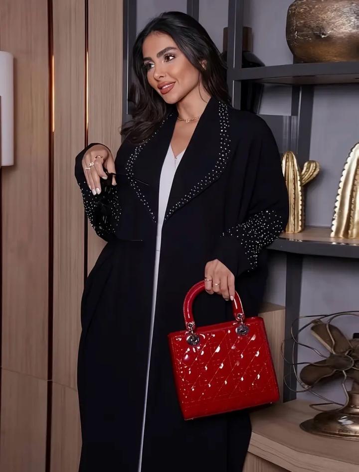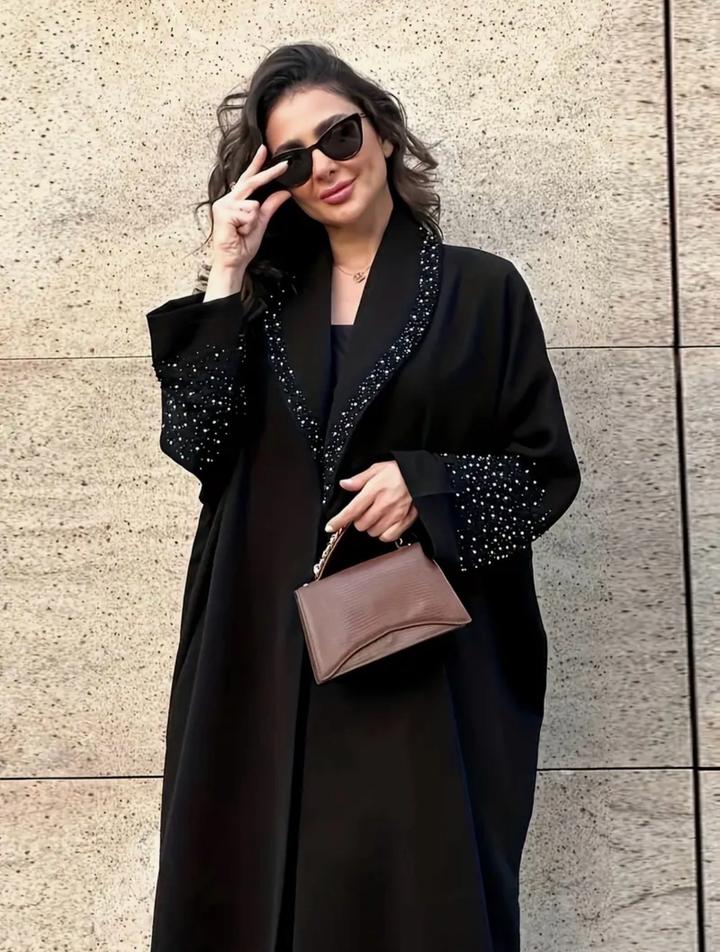 Черный Абайя свободного кроя, с длинным рукавами, стильный дизайн Артикул: 559667