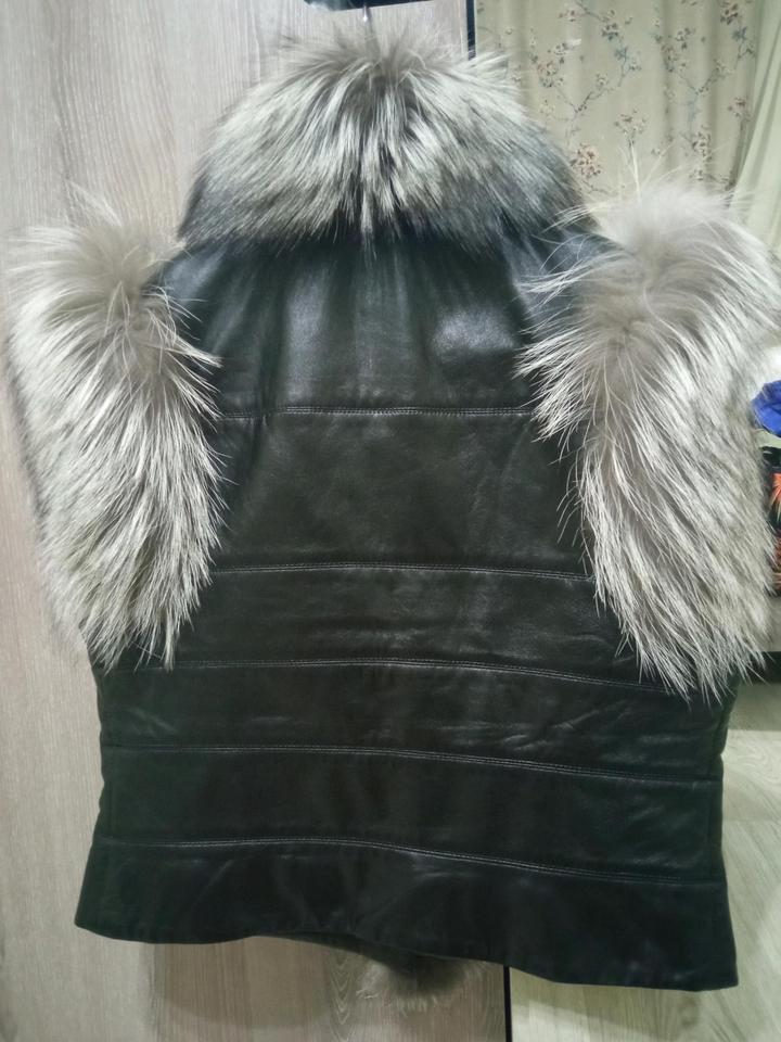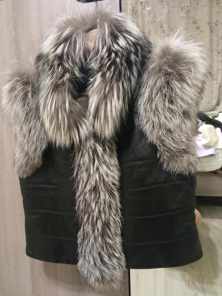 Жилет на кнопках из натуральной кожи, воротник стойка с натуральным мехом чернобурки, производство Турция фирма Adamo. Состояние отличное, царапин, потертостей нет, натуральный изначальный цвет. Жилет приталенный. Размер 46-48 Артикул: 559669