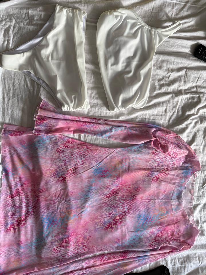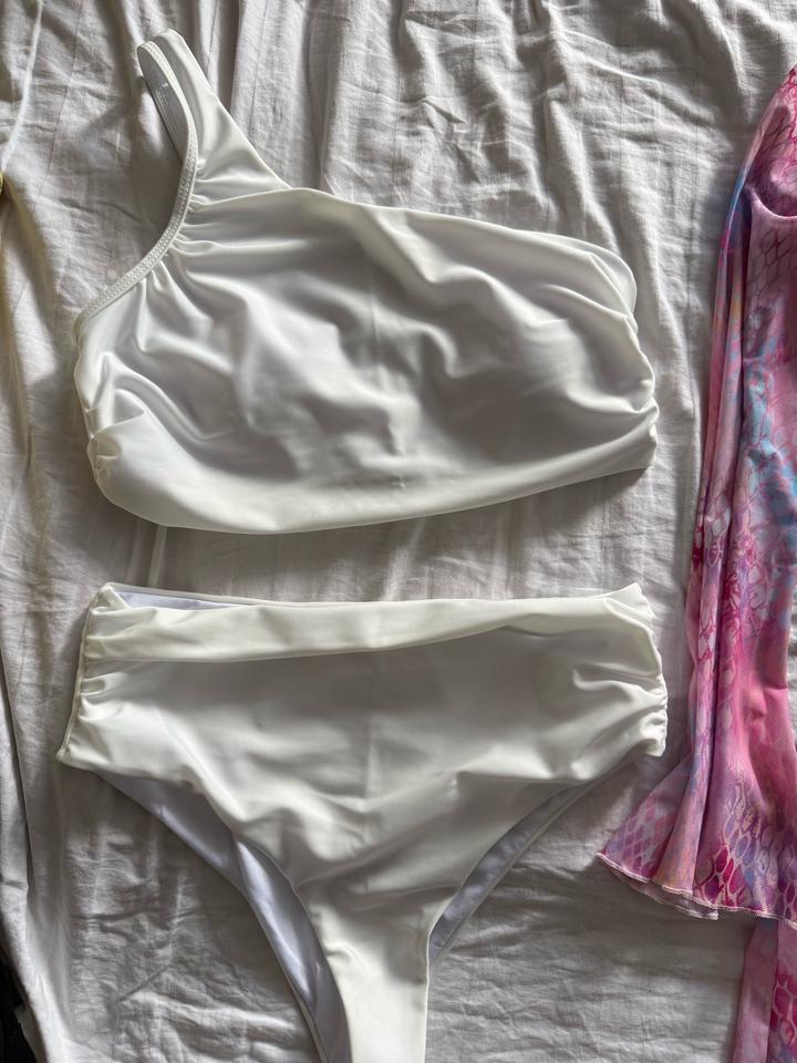 Спф накидка и белый купальник к нему, одевала 1 раз. В новом состоянии. Размер 46 Артикул: 559735