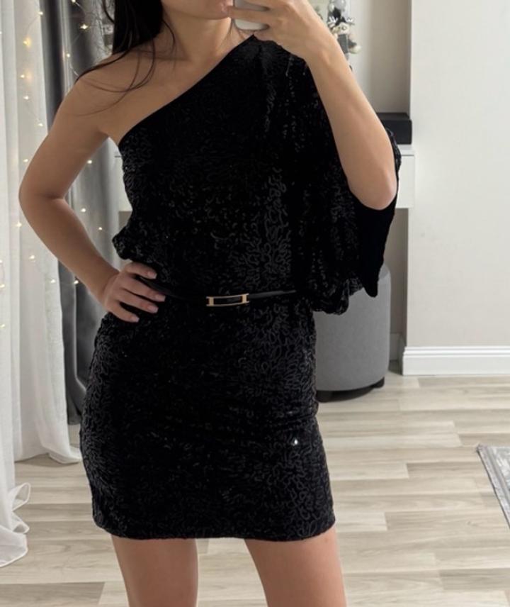 Черное платье с пайетками | вечернее | на одно плечоS/M