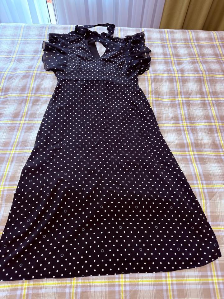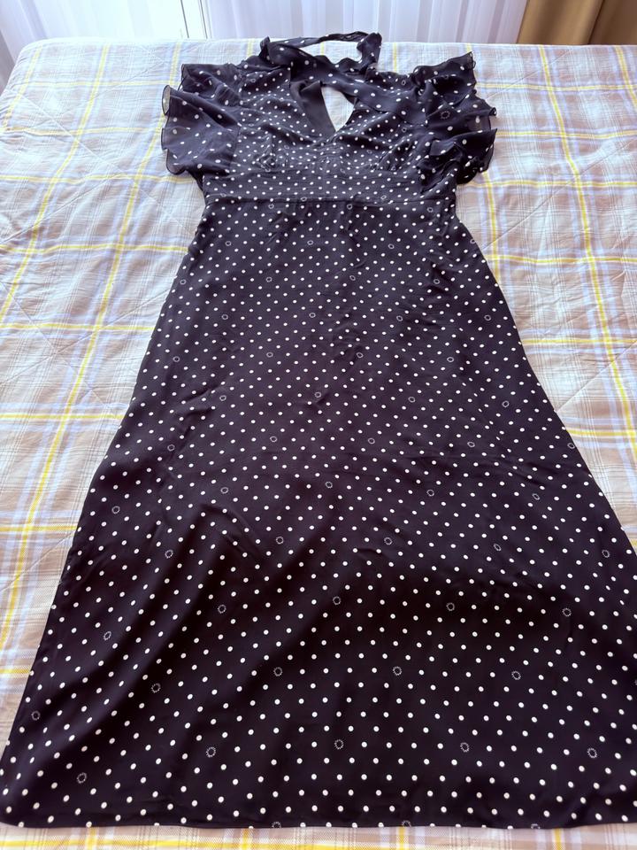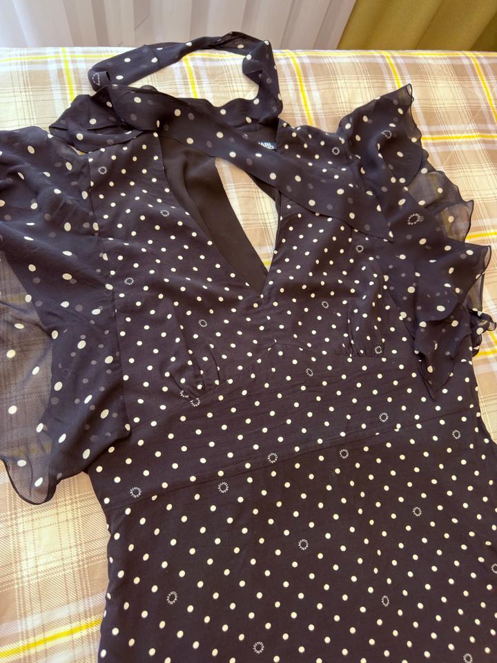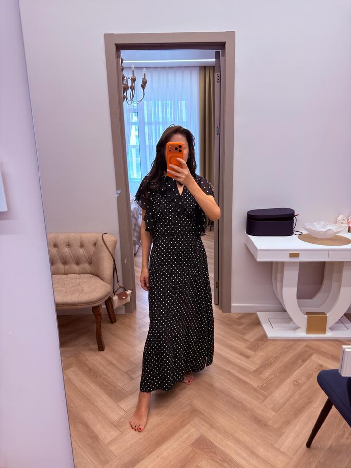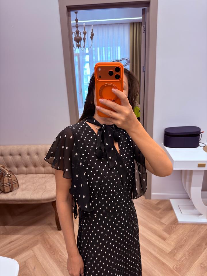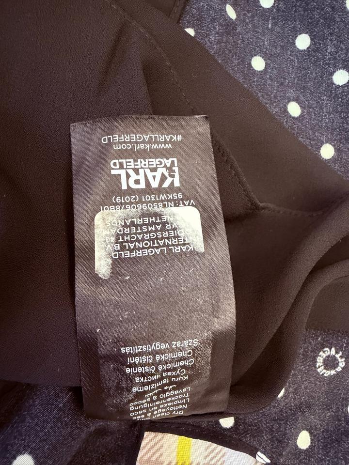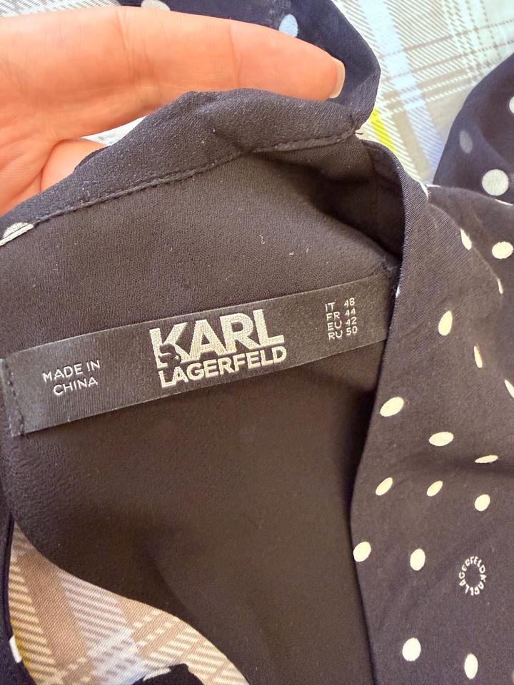 Летнее платье Karl Lagerfeld, в горошек с логотипом (этом сезоне самый актуальный принт), ткань креп, легкое, струящееся, хорошо сядет на 48 размер, или на стройный 50 размер. Надевала 1 раз. Артикул: 559826