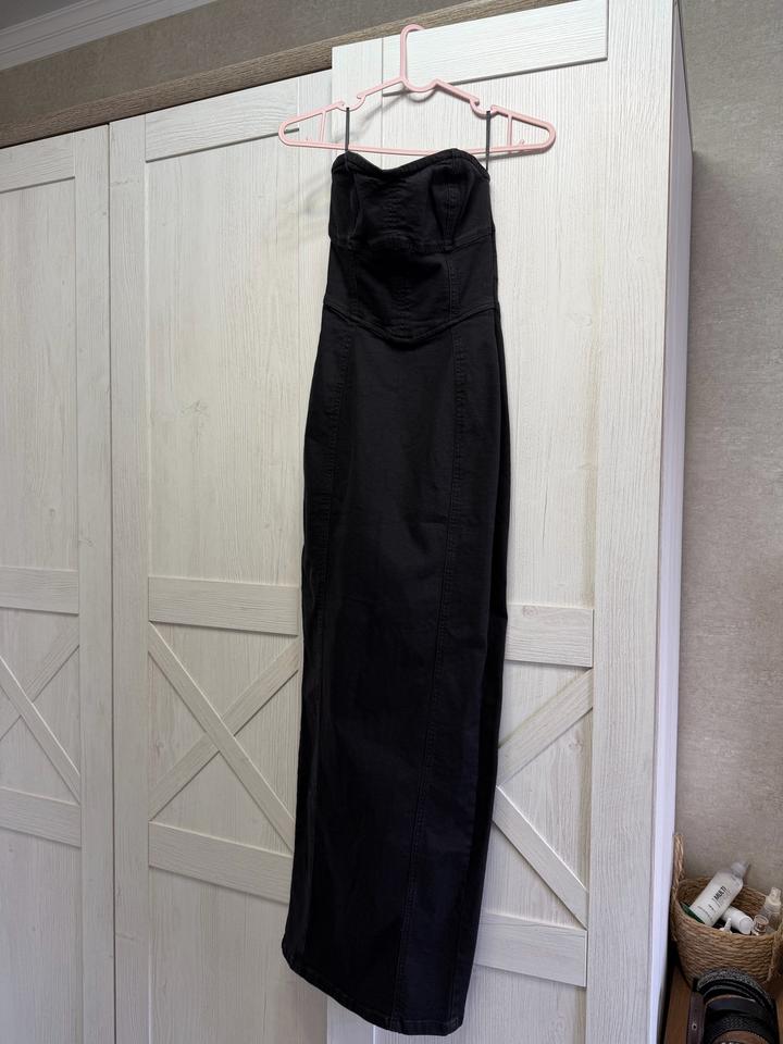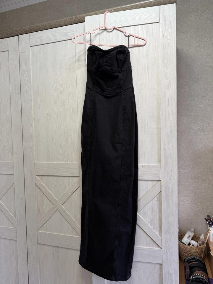 Джинсовое платье сарафан без плеч. Бренд Бершка. Длина макси. Сидит по фигуре. Размер XS. Очень красивое Артикул: 559847
