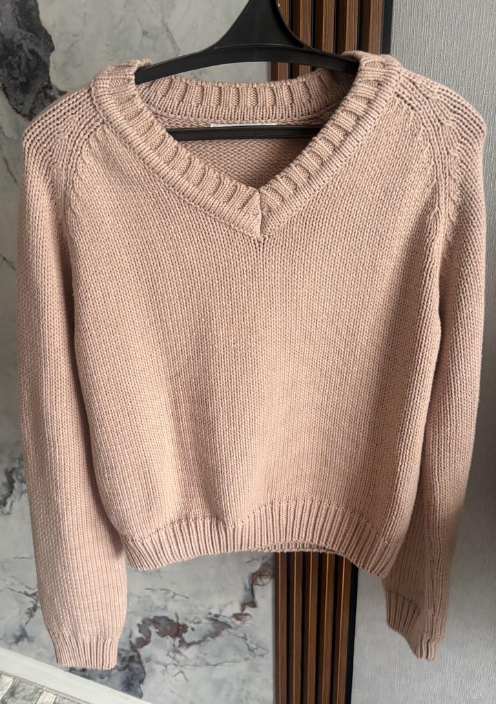 Пудровый свитер, материал приятный, ворот не растягиваетсяXS