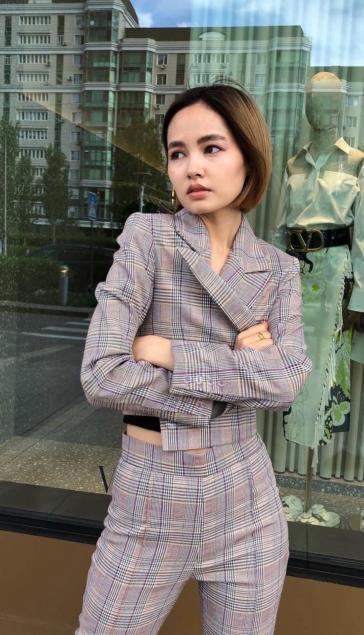 Костюм-двойка из тонкой шерсти. Шился на заказ. На модели размера XS сидит как на фото выше. Надевался пару раз, состояние отличное. Артикул: 559888