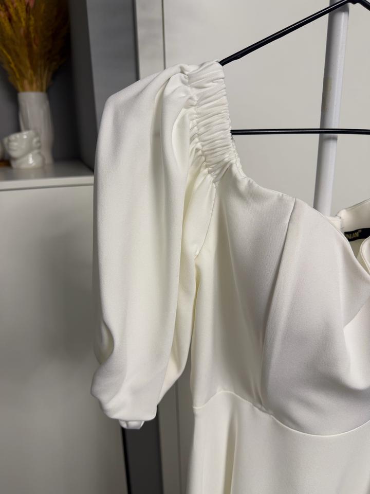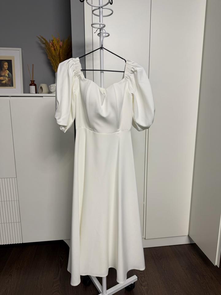 Белое платье с корсетными вставками. Не носилось. Размер 42, ткань немного тянется, рукава можно приспустить. Очень красиво подчеркивает фигуру. Покупали для танца на последнем звонке, передумали танцевать в белом. Поэтому платье новое. Артикул: 560019