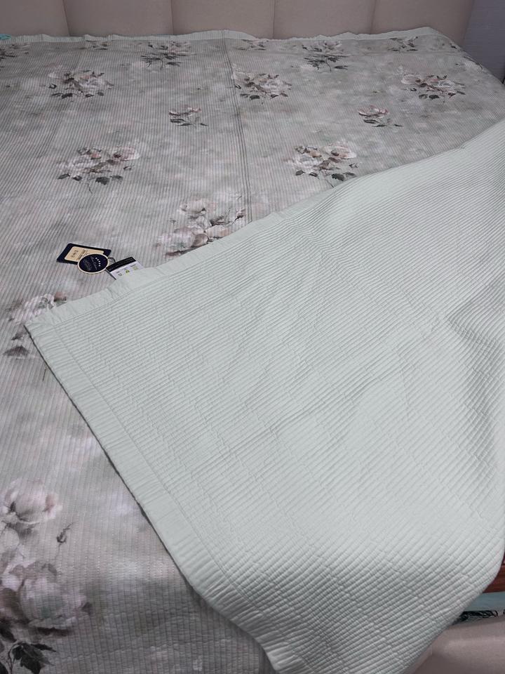Двухсторонее покрывало, материал тенсель. Цвет фисташка , очень нежное. Рр 200*230. Артикул: 560060