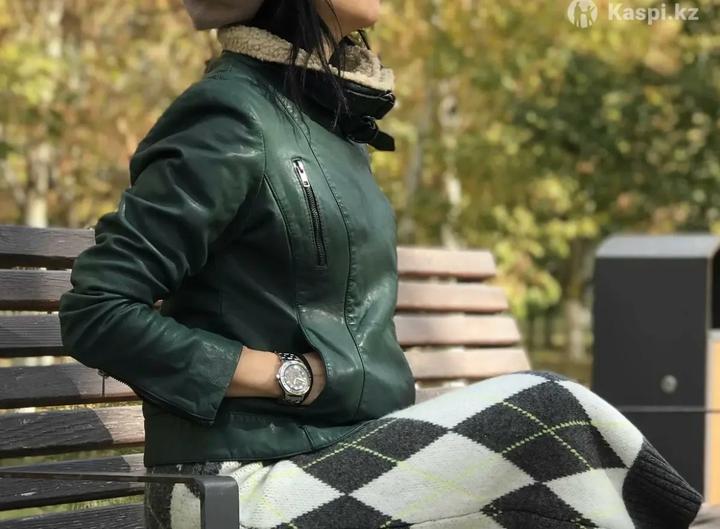 Короткая куртка-косуха в зелёно-изумрудном оттенке. Стильная и актуальная модель, отлично подчёркивает силуэт и легко сочетается с повседневными и более нарядными образами. В хорошем состоянии. Артикул: 560093