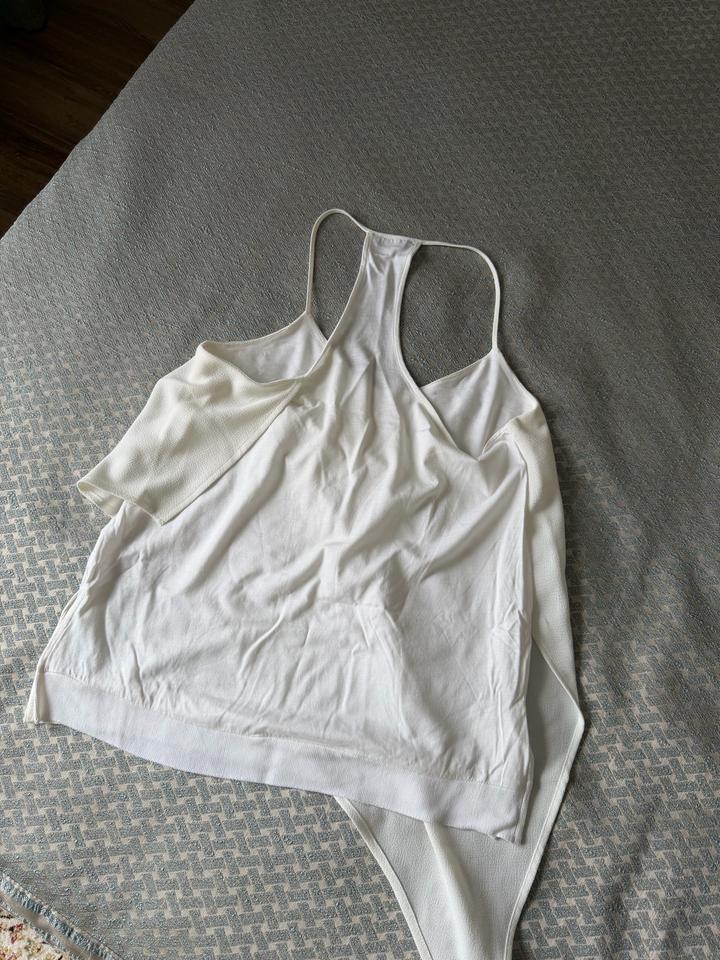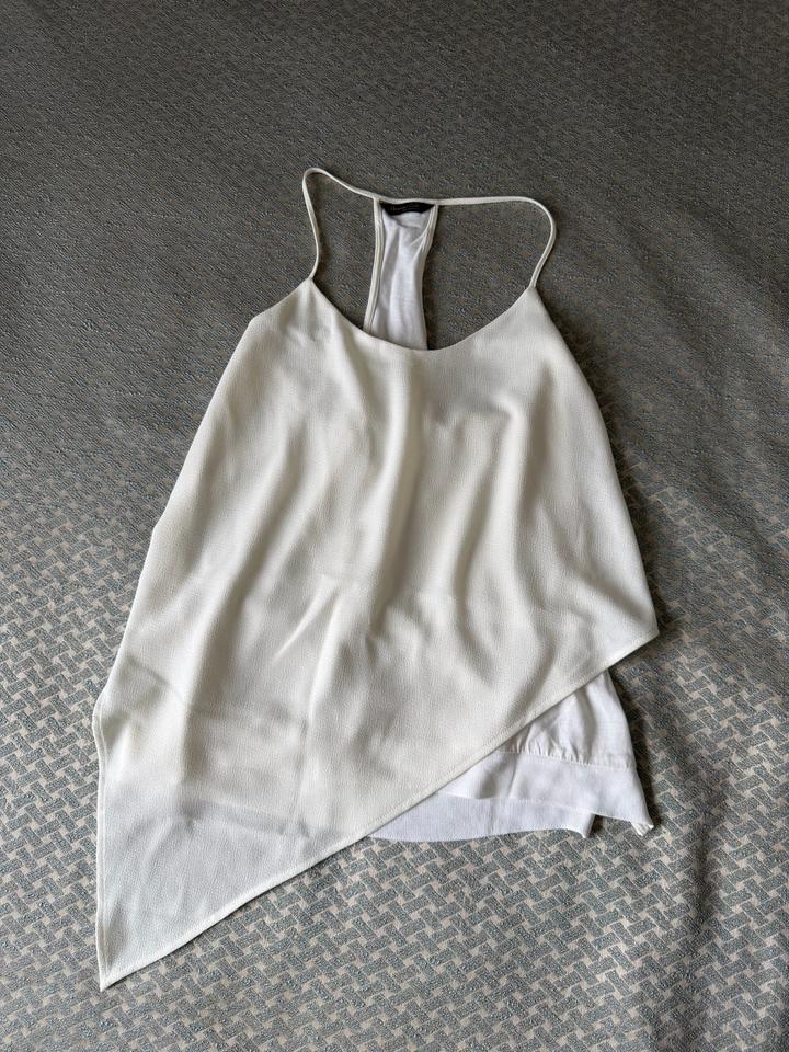 Ассиметричный топ Massimo Dutti, кремового цвета. Подклад снизу из мягкого хлопка, а ассиметричный верх из приятного фактурного материала Артикул: 560096