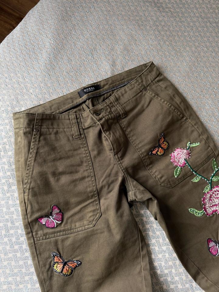 Брюки Guess, цвета хаки, с нашивками Артикул: 560116