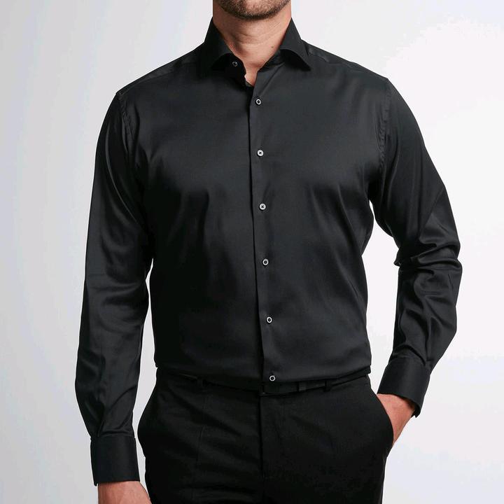 Продам великолепную рубашку от бренда Eterna! Абсолютно новую, в носке не была! Рубашка соткана из нитей высококачественного 100% хлопка, в насыщенном чёрном цвете! Невероятная выделка ткани, как шёлк, она лосница и переливает...действительно королевский эффект! Вышивка логотипа бренда на манжете рукава! Модель modern fit! Маркировка 16,5/42, на 50/52/54 Артикул: 560135