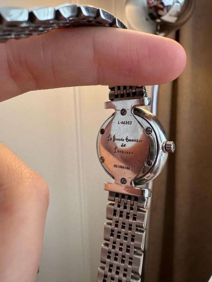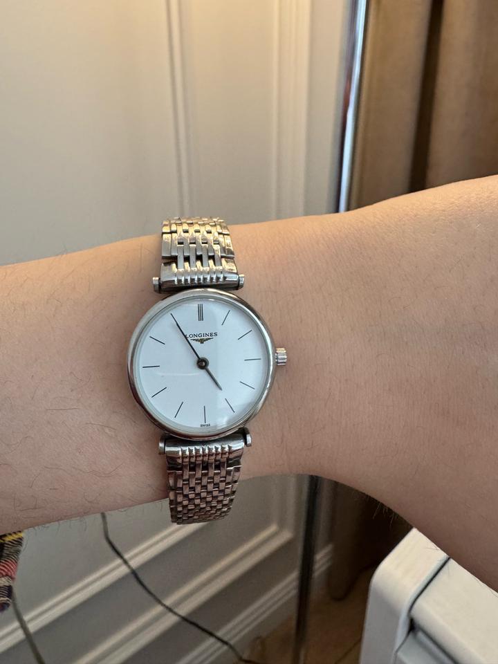 классические швейцарские часы Longines 🇨🇭 модель: La Grande Classique de серийный номер: L4.635.2 очень тонкие, минималистичные часы. корпус: сталь циферблат: белый с тонкими индексами механизм: кварц (на батарейке) диаметр примерно: 30–34 мм стиль: унисекс / чаще женский. Модель давно снята с производства❌ Брала за 1000$ Артикул: 560150
