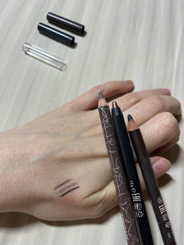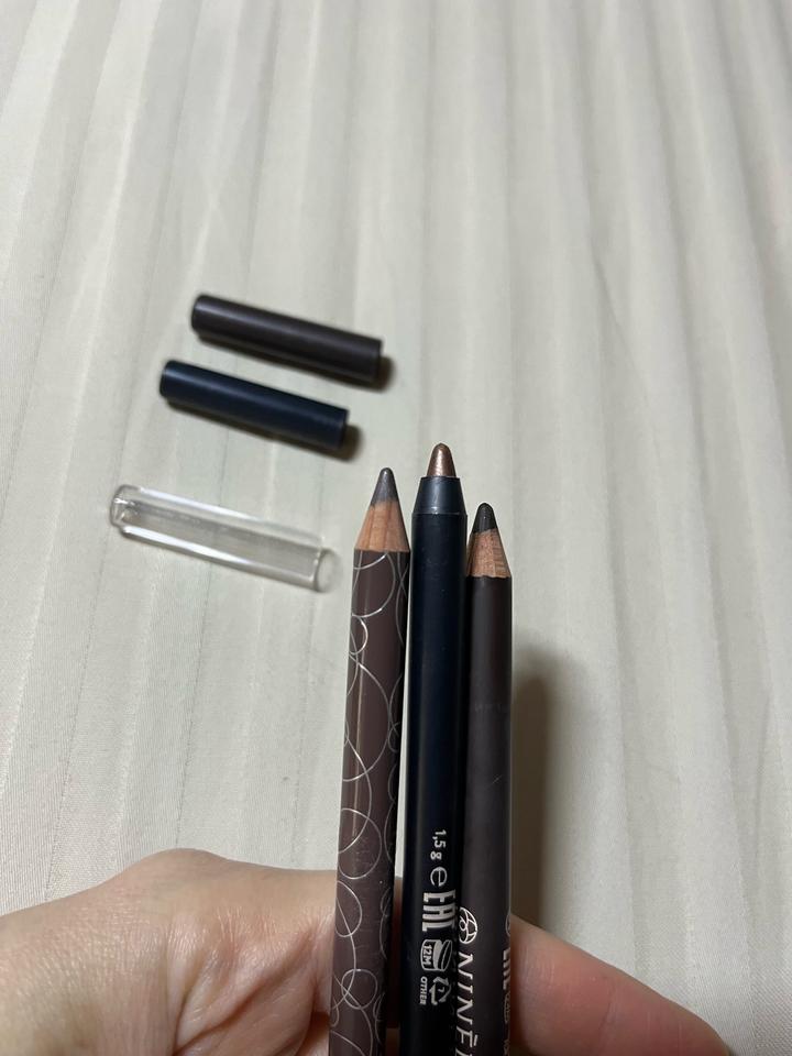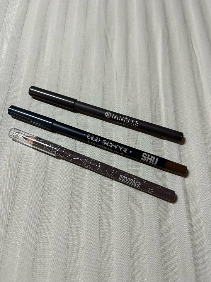 Использовала чтобы показать оттенки, все карандаши новые, не пользовалась. Разные оттенки коричневого цвета: Ninelle Efecto 212 Shu old school 15 Luxvisage Eye Liner 12 Артикул: 560253