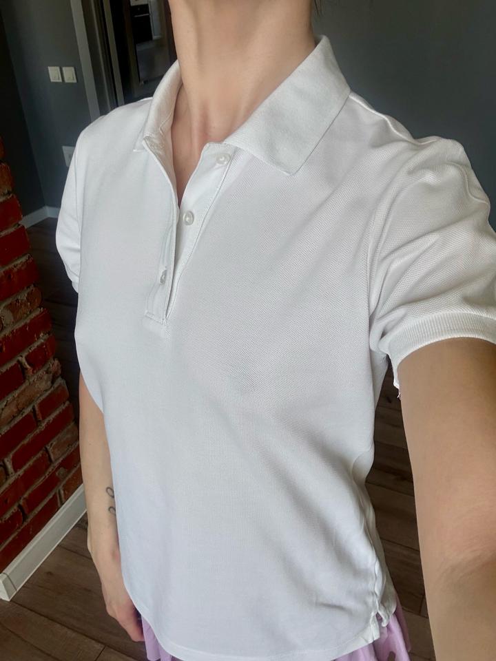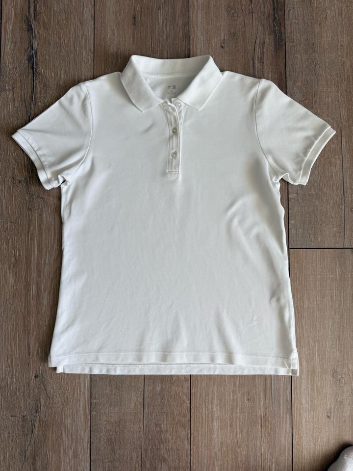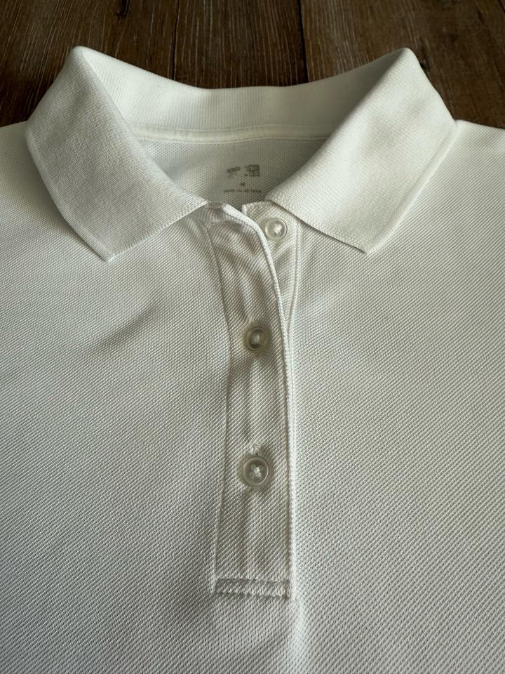 Белое Поло UNIQLO, в идеальном состоянии, за исключением что во время стирки частично стерся лейбл! Обратите внимание ‼️ размер скорее S Надевали лишь раз и один раз отбеливали! Артикул: 560293