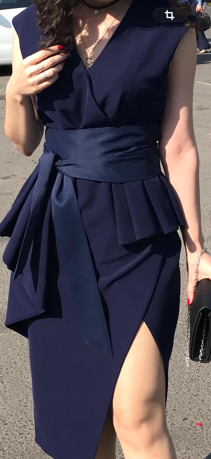 Синее платье с поясомS/M