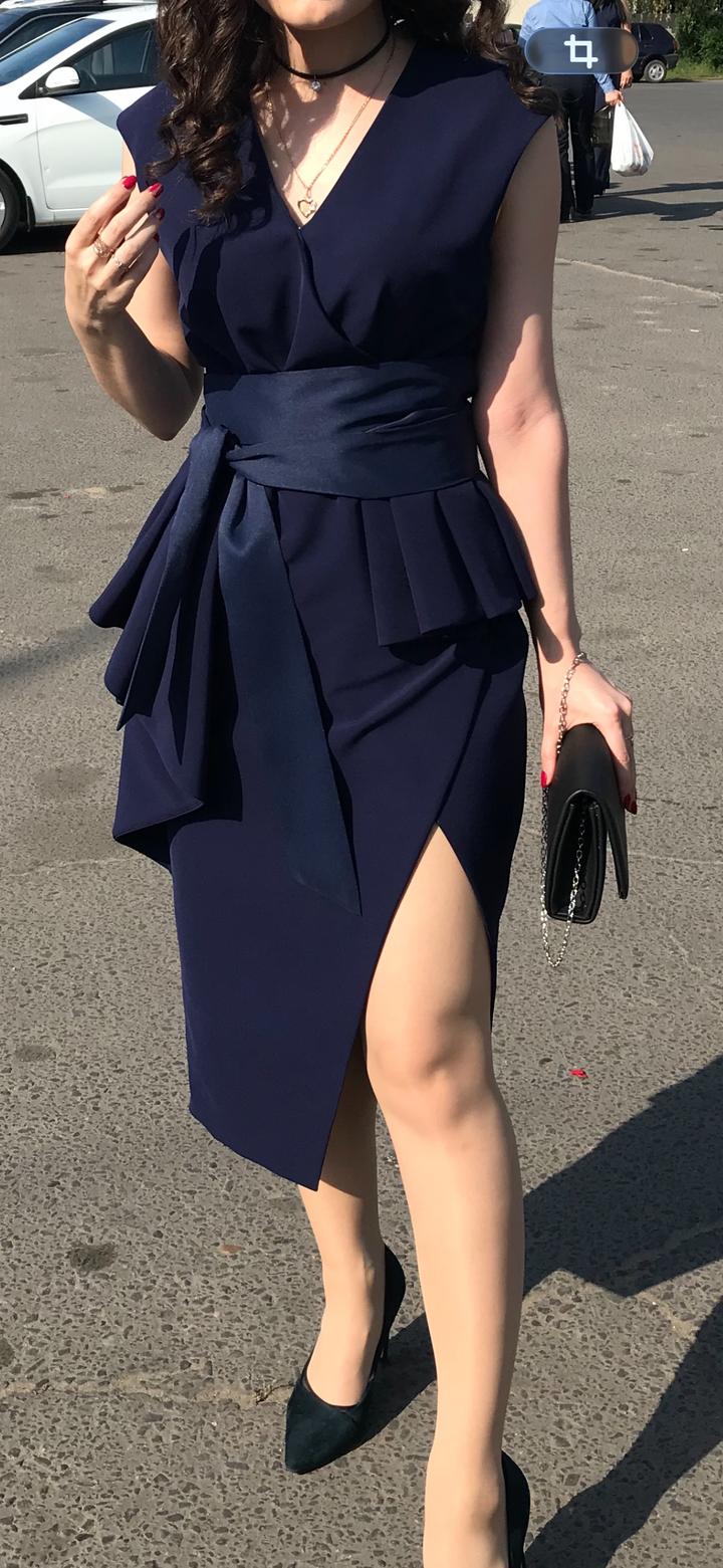 Синее платье с поясом , одевали один раз. Размер 42-44. Артикул: 560553