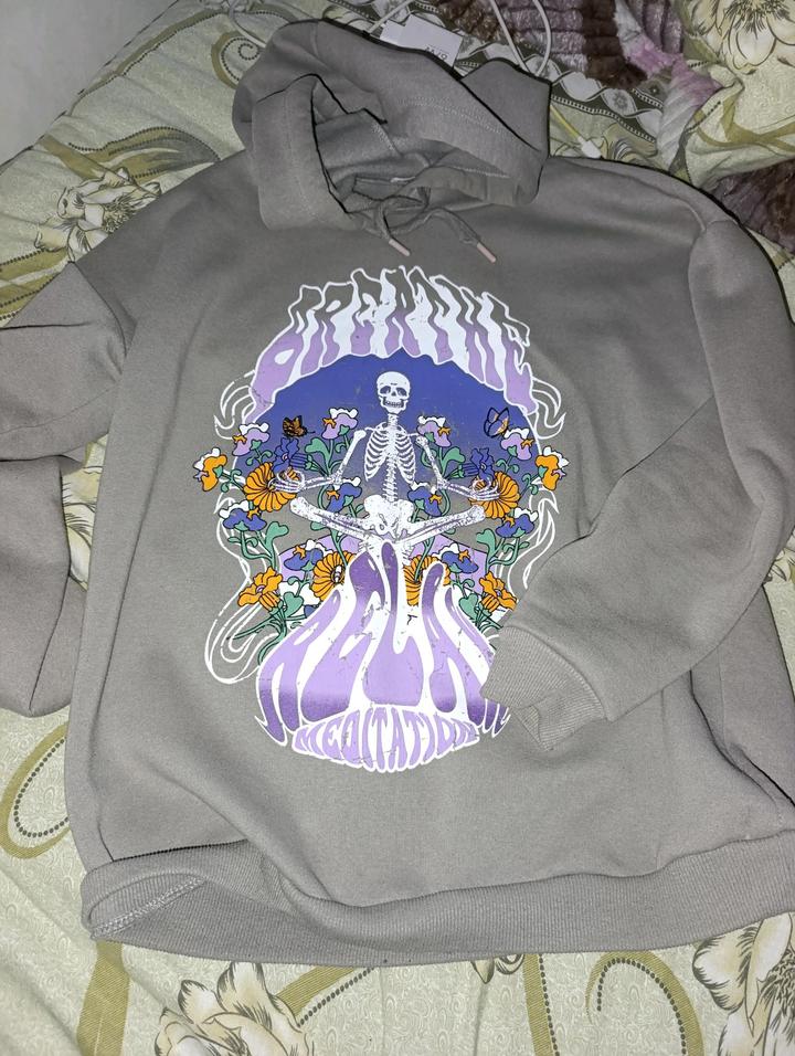 Серое худи на флисе,размер с Состояние хорошее, единственное это заводской дефект на рукаве Артикул: 560554