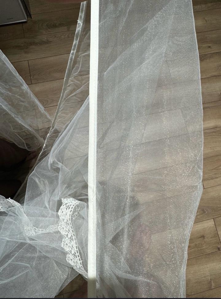 Продам свадебную фату, ажурную по бокам по всей длине, цвет белый. Без заколки, крепиться будет вашими шпильками или заколками, фата сверху на сборке. Длина фаты 1,50 см. Новая, без бирки, не была надета. ( купила другую фату). Артикул: 560568