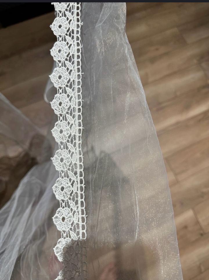 Свадебная белая фата, ажурная по бокам.-
