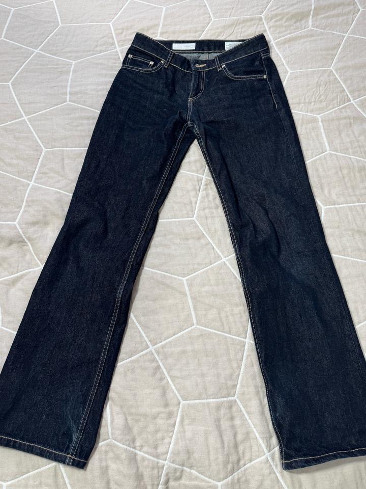 Темно синие джинсы на низкой посадке, клеш я бы сказала. Носились пару раз, хорошо сидят на бедрах Артикул: 560577