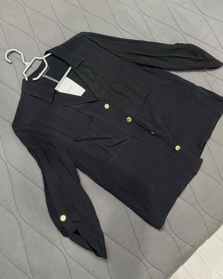Черная блузка /рубашка с золотыми металлическими пуговицами Артикул: 560605