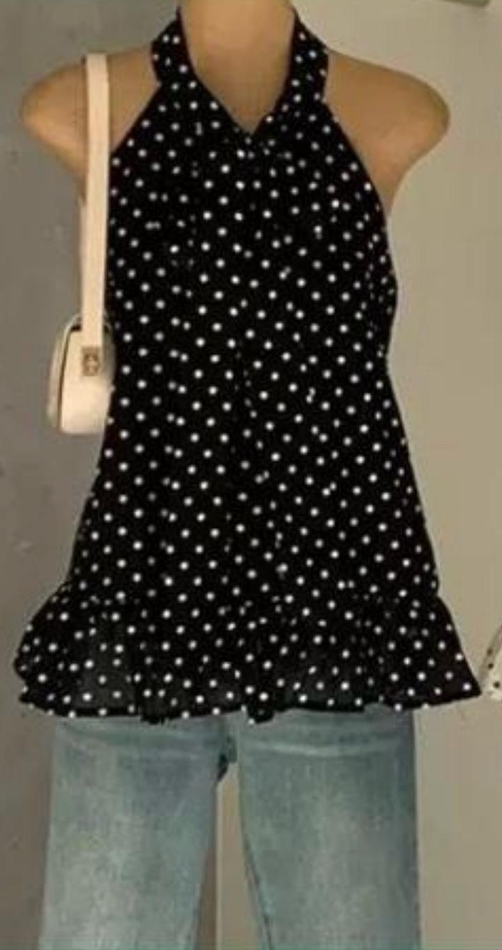Черный топ в горошекOne size