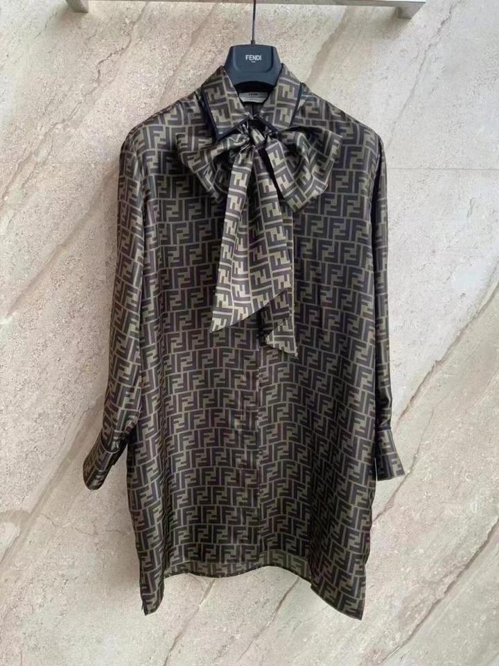 Шелковая рубашка с ремнем от бренда Fendi. Едентичность с оригиналом 1:1. Артикул: 560695
