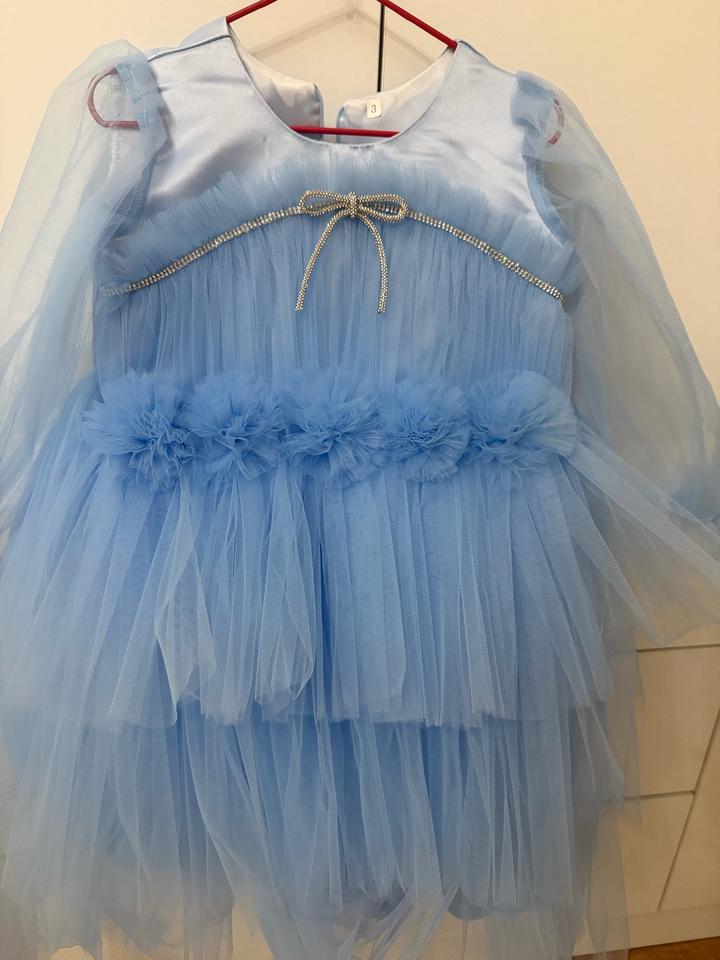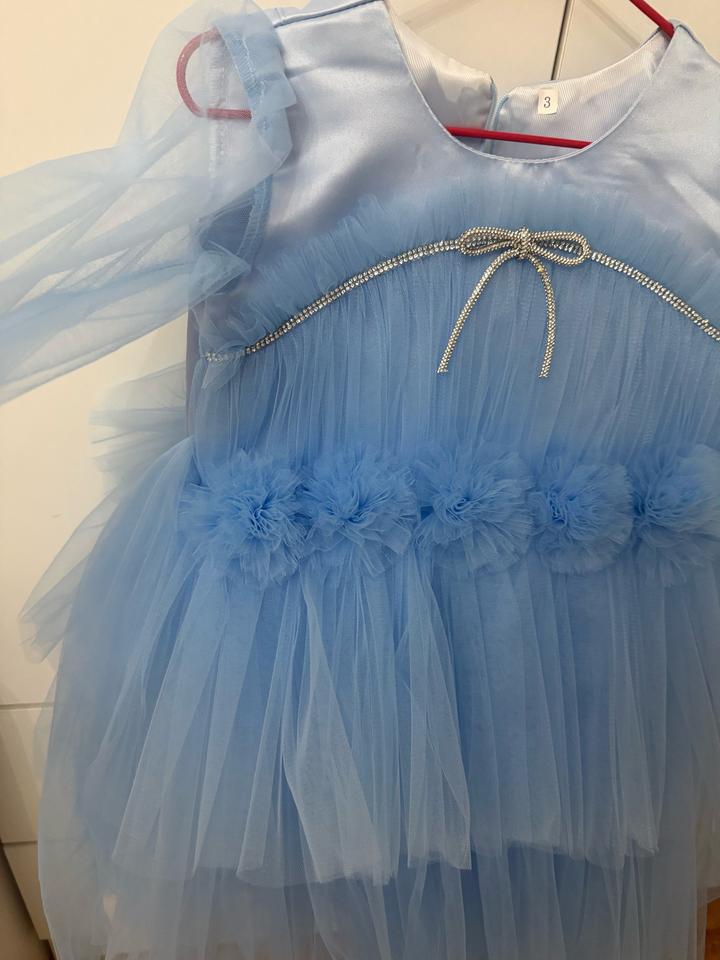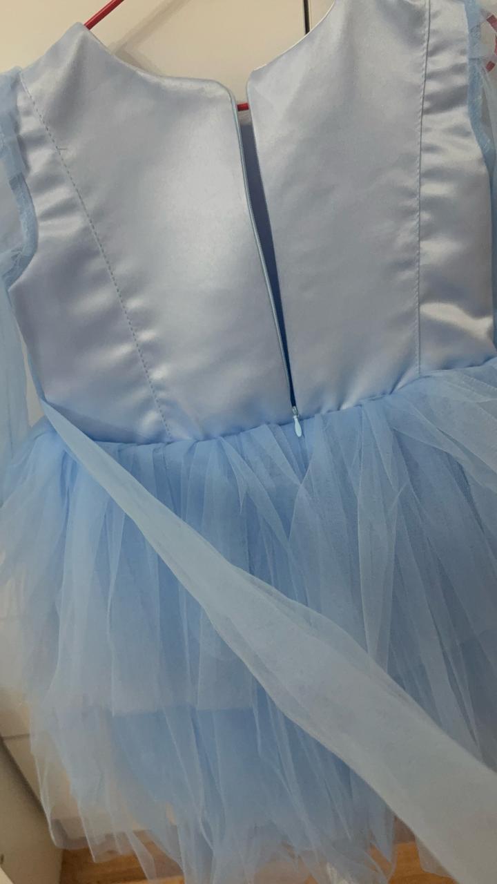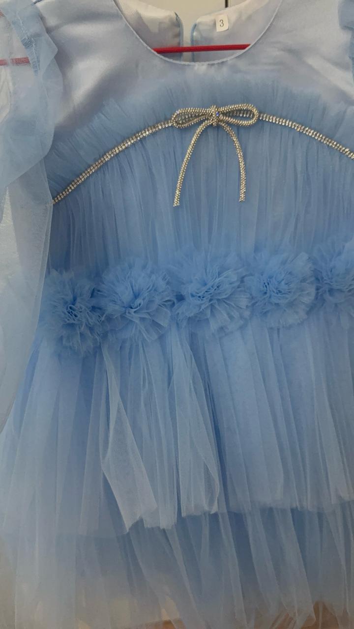 Детское бальное платье не подошел нам размер маленький, возраст к 3 годам , цвет нежно голубой сетка очень красиво смотрится, рукава фонарь сетка не обычно Артикул: 560726