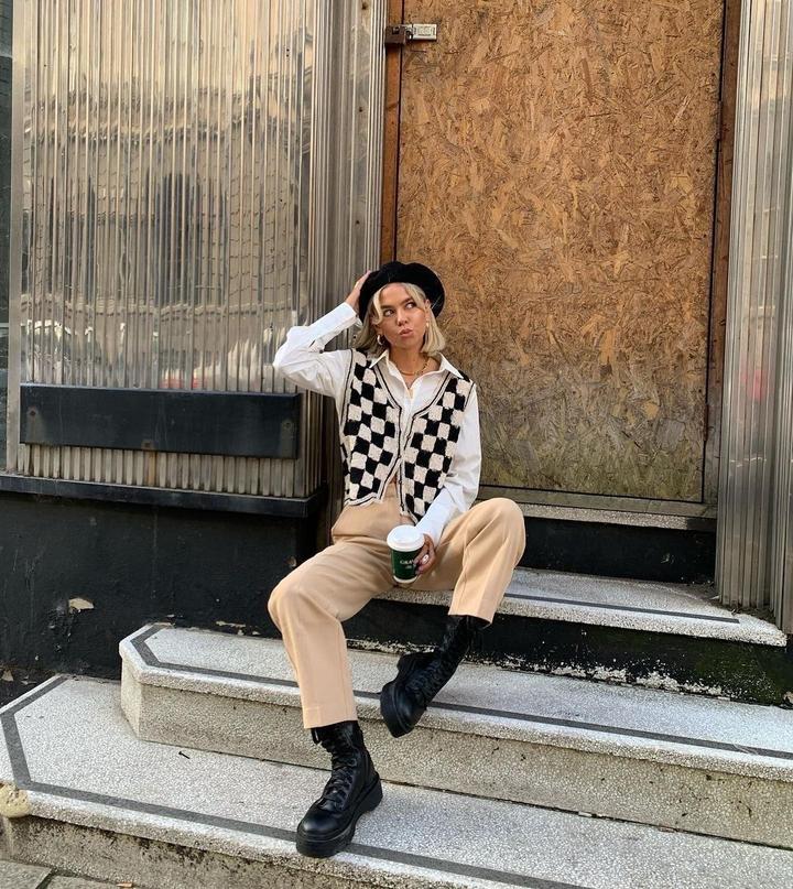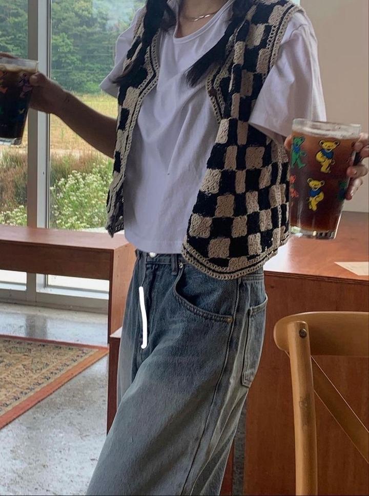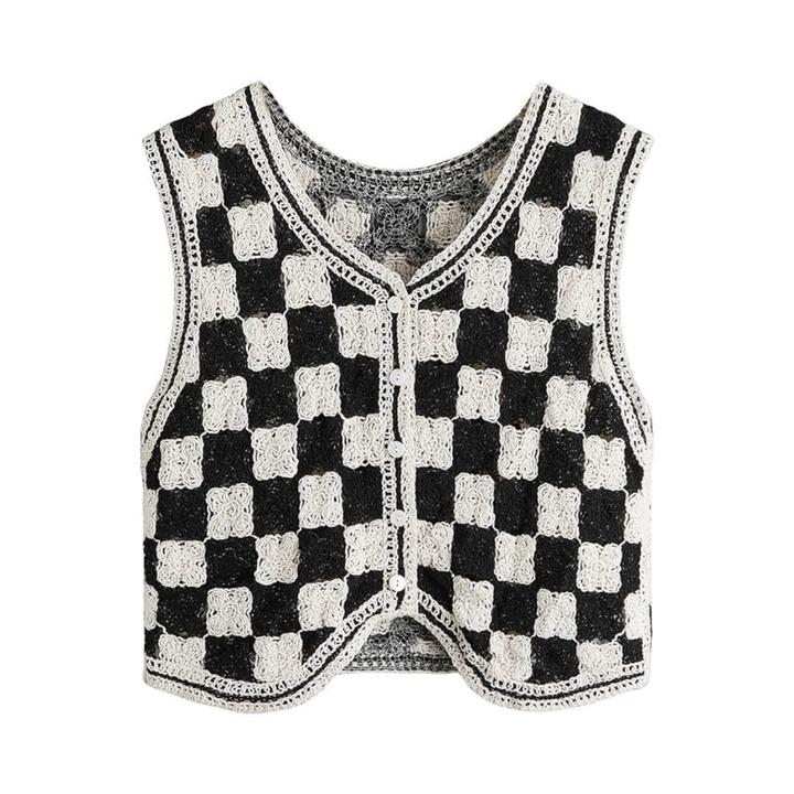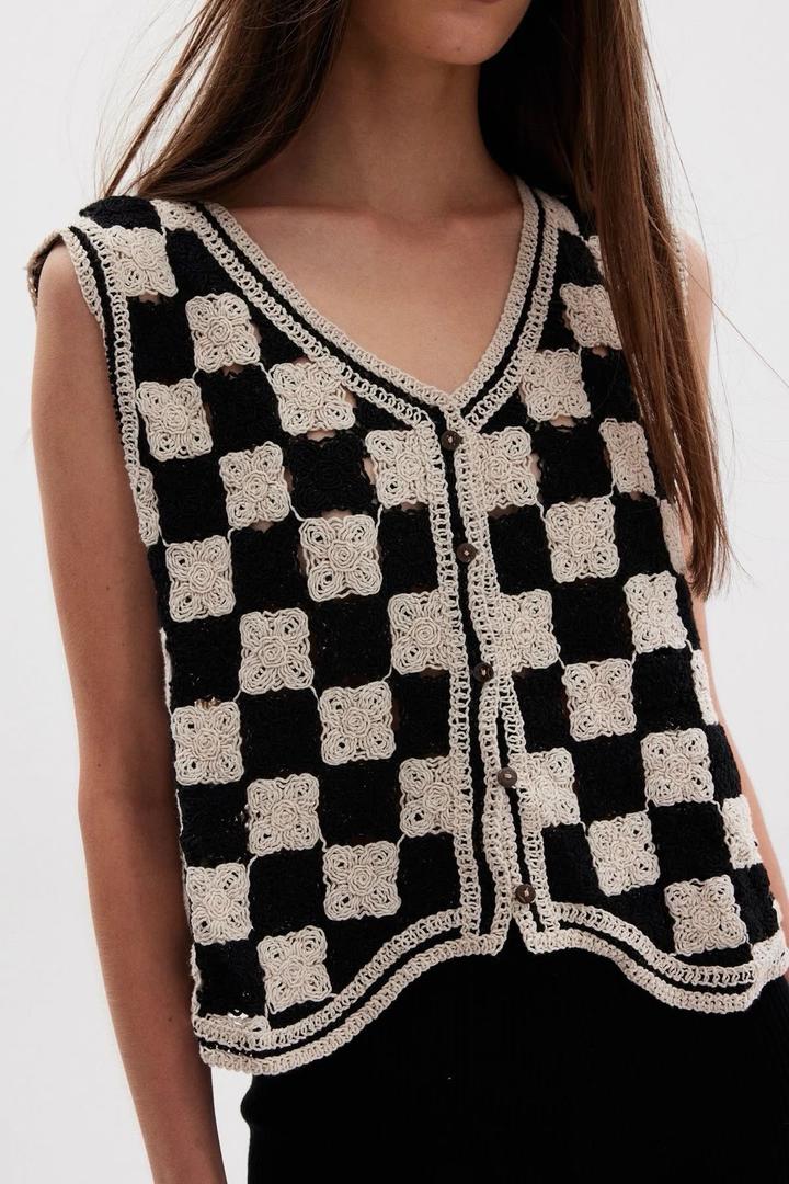Железка черно-белая на пуговицах. Плетенная в клетку (кружево) Размер: S-M Артикул: 560792