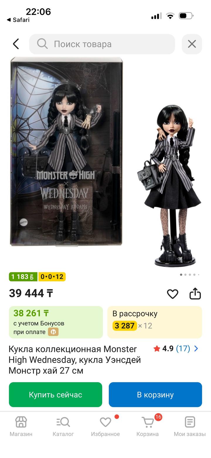Кукла Вэнсдей Wednesday Addams* Monster High-