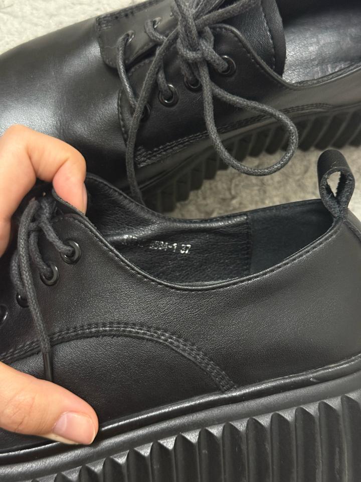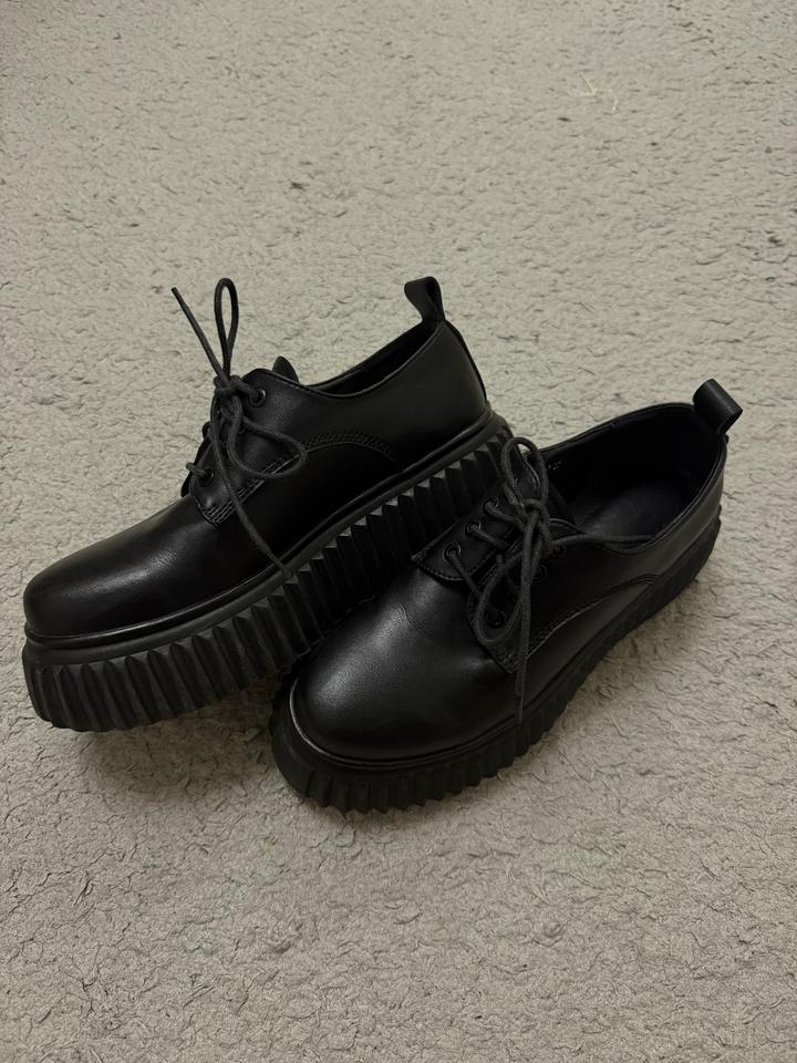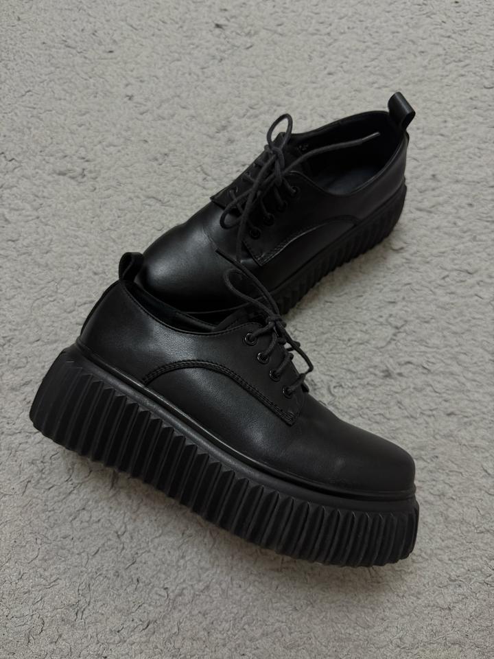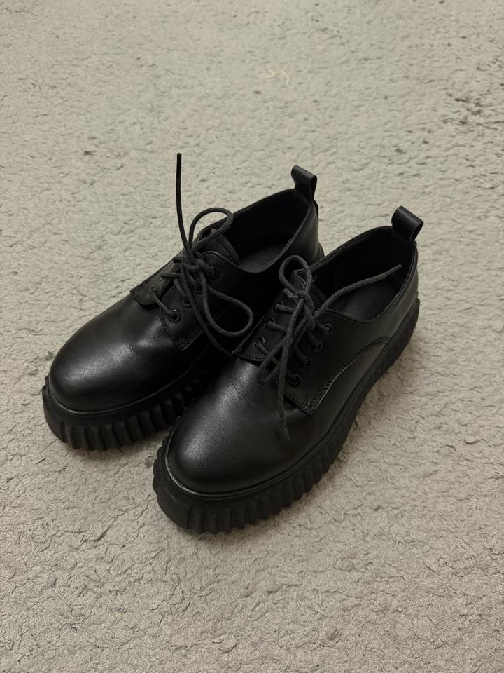 Черные кожаные лоферы на платформе. Тип завязки: шнурки. Подойдет и на размер 3+7### ### ## ##го стиля. Артикул: 561053