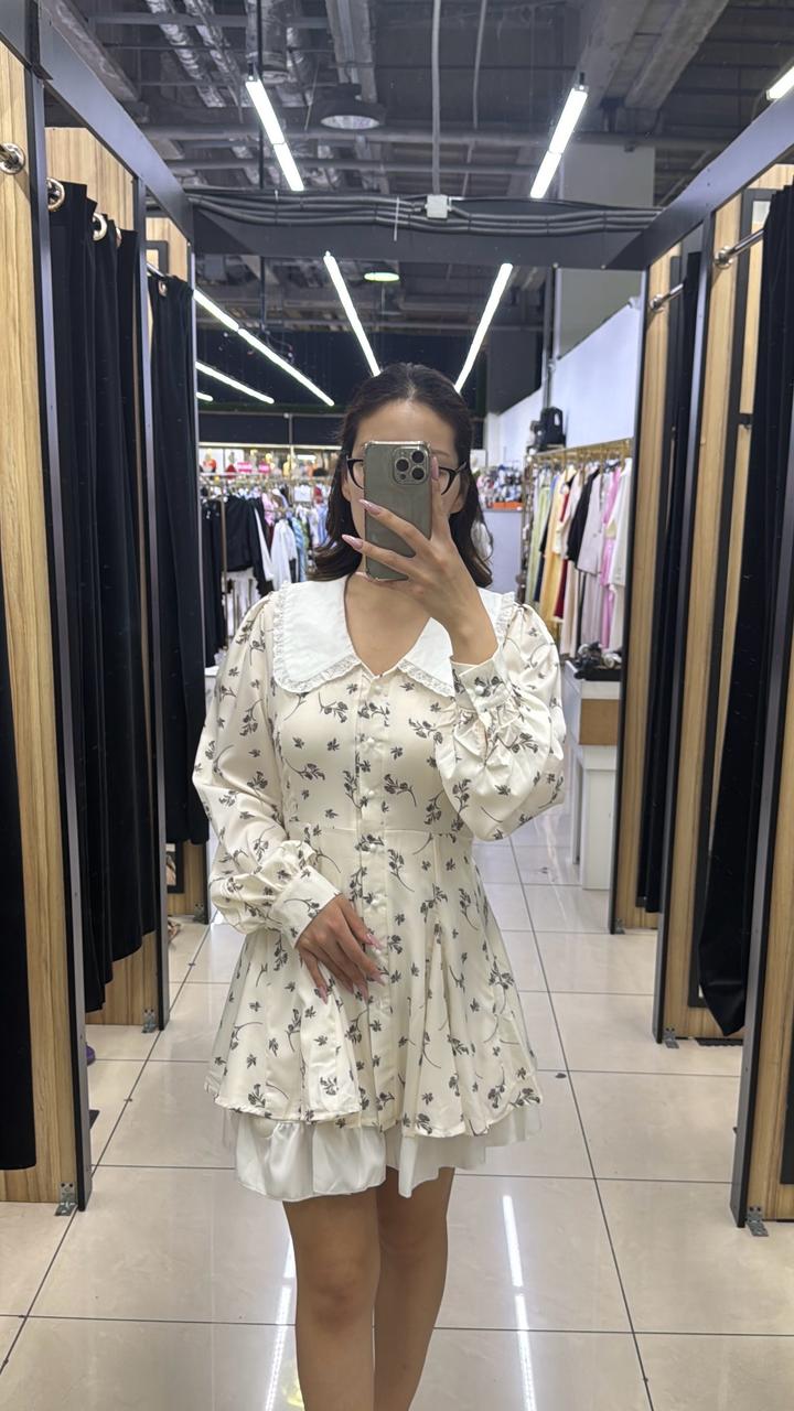 Белое цветочное платьеM