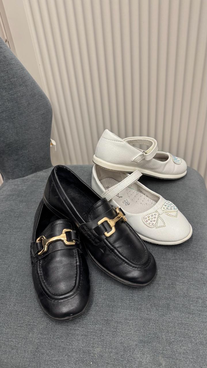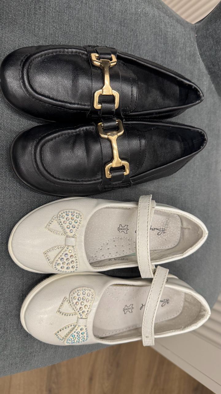 Туфли лоферы от Зара размер 31 на узкий подьем. 2 туфли 30 размер в подарок идет. Состояние как на фото . Бу . Цена за 2 туфли. Без коробки . Артикул: 561156