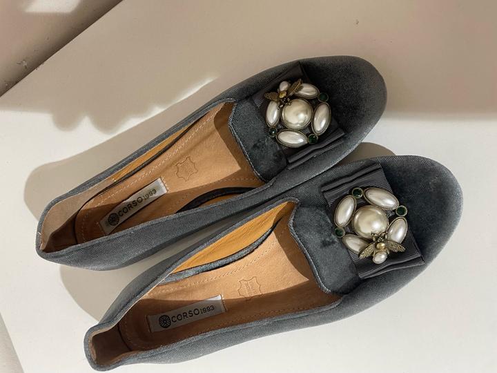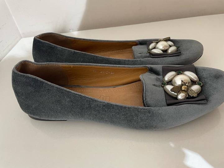 Балетки с жемчугом в стиле Gugcci В красивом голубо-синем цвете Очень удобные Артикул: 561202