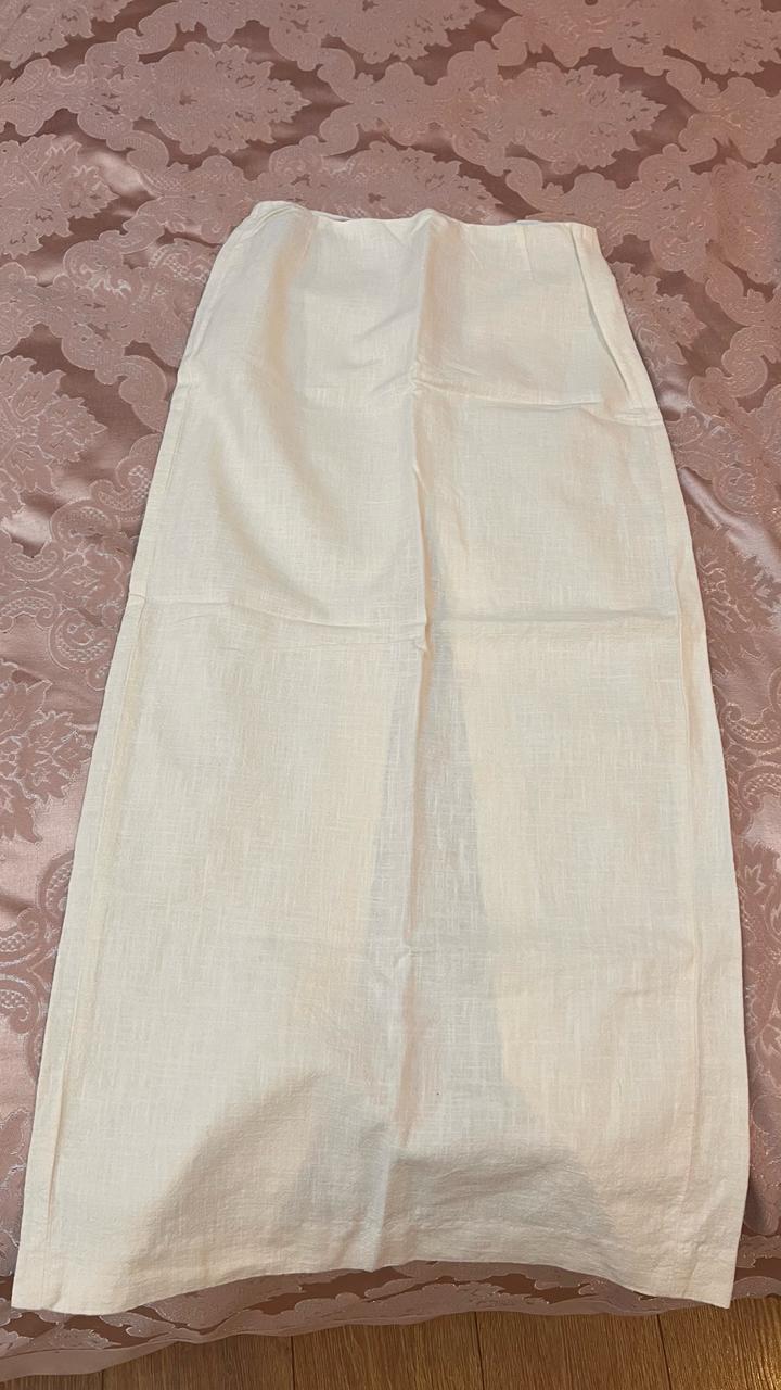 Юбка цвета айвори, сзади разрез, Манго. Носила 1-2 раза. Материал лен. Артикул: 561242