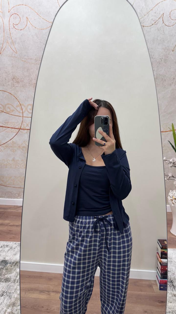 Синяя пижама, в комплекте: брюки, кардиган и майка. Состояние новое Артикул: 561256