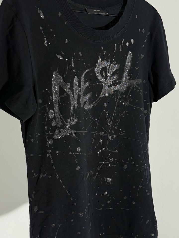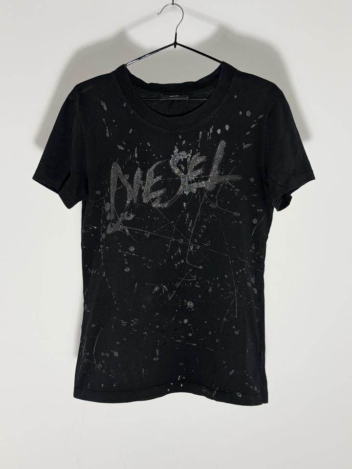 Архивная skinny fit футболка Diesel в глубоком черном цвете. Модель выполнена в эстетике гранжа и инди-слиза: приталенный крой, акцентный графичный логотип Diesel и эффектные брызги краски Артикул: 561261
