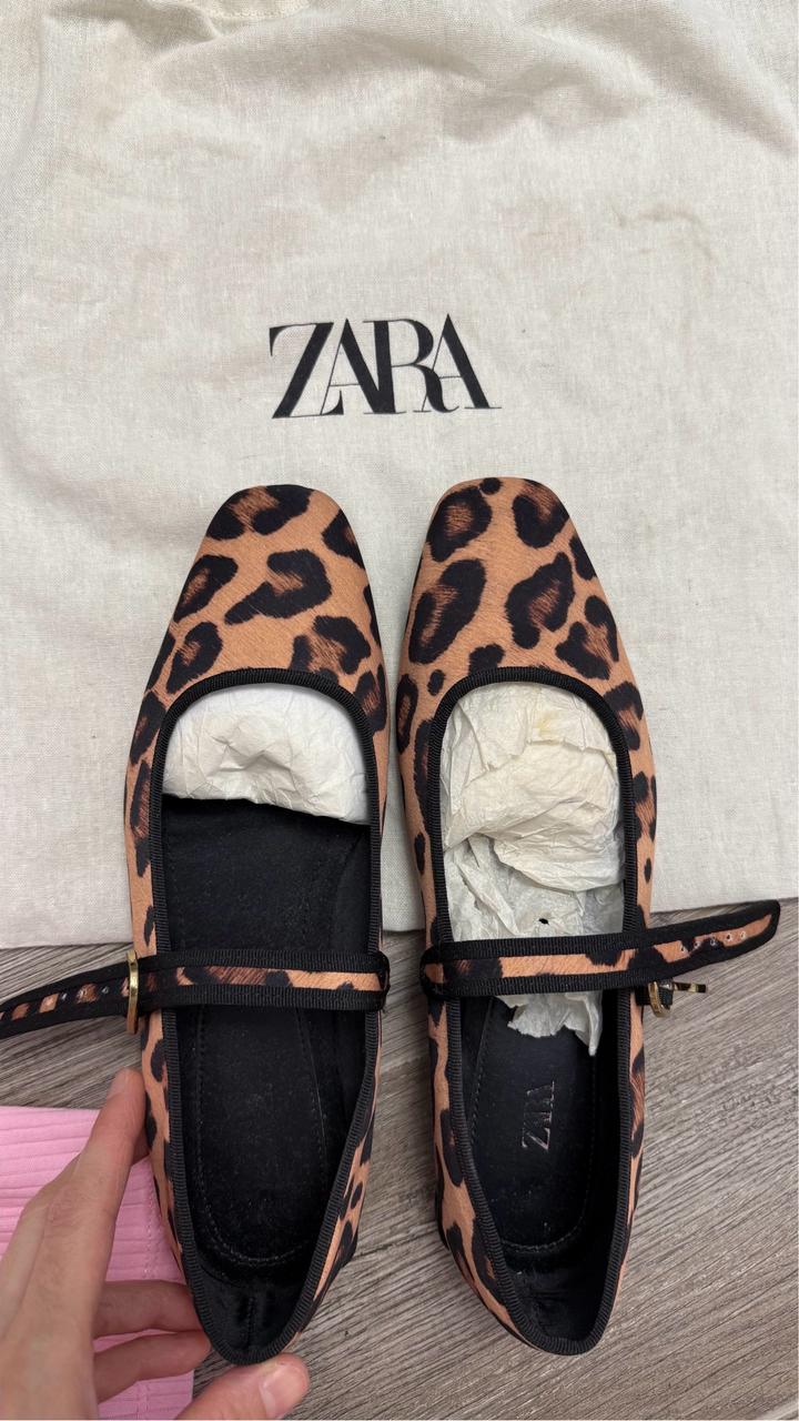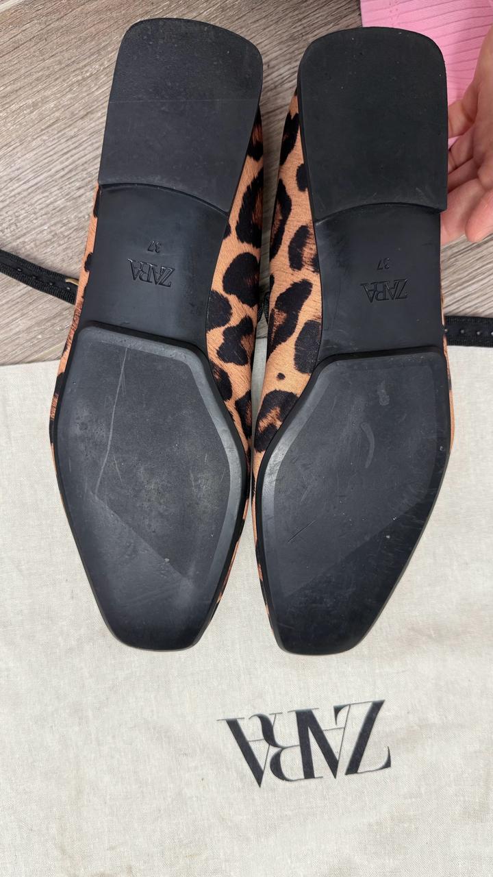 Сатиновые Балетки zara с лео принтом. В очень хорошем состоянии, обувались 1-2 раза на мероприятие. Без дефектов, запахов. Артикул: 561337