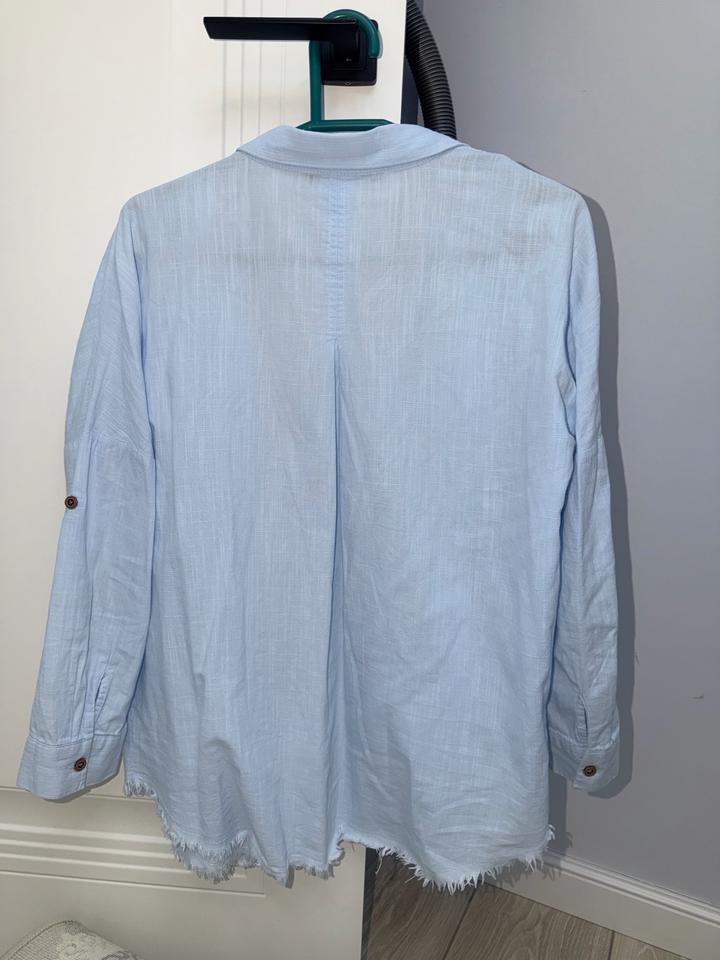 Продаётся стильная льняная рубашка нежного небесно-голубого цвета. Производство — Турция Размер: 42–44 (подойдёт на S/M) Материал: 100% лён — лёгкий, дышащий, идеально на лето Состояние: отличное Очень комфортная и стильная, подходит как на каждый день Артикул: 561472