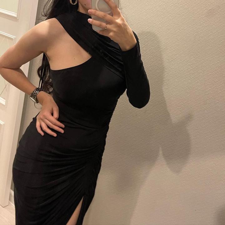 Сшила под заказ 2 платье, черное, и красное. Но так и не удалось выгулить. Не помню название ткани, но ткань очень качественная, классная, приятная, тянущая, не просвечивает. Длина, плечи регулируется. Подходит как для S, так и для М. Артикул: 561517