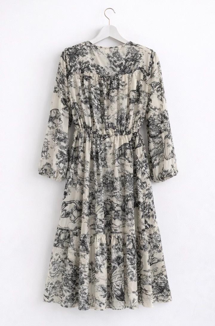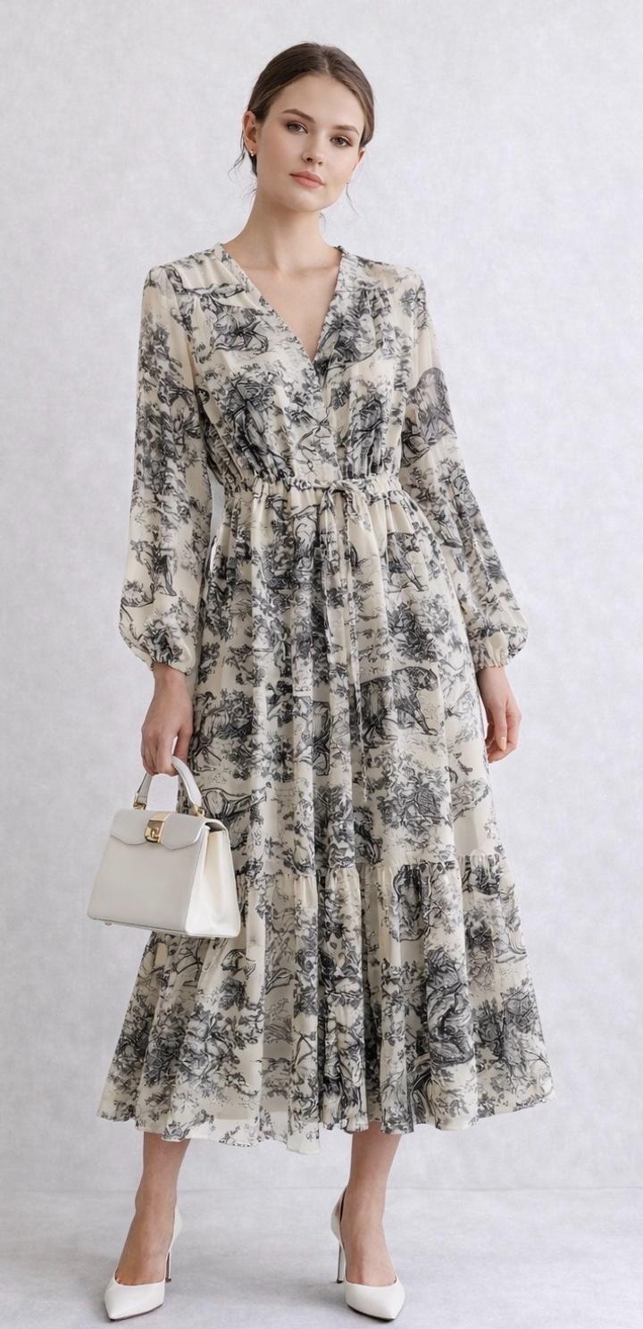 Платье миди в стиле Dior | изысканный принт toileL