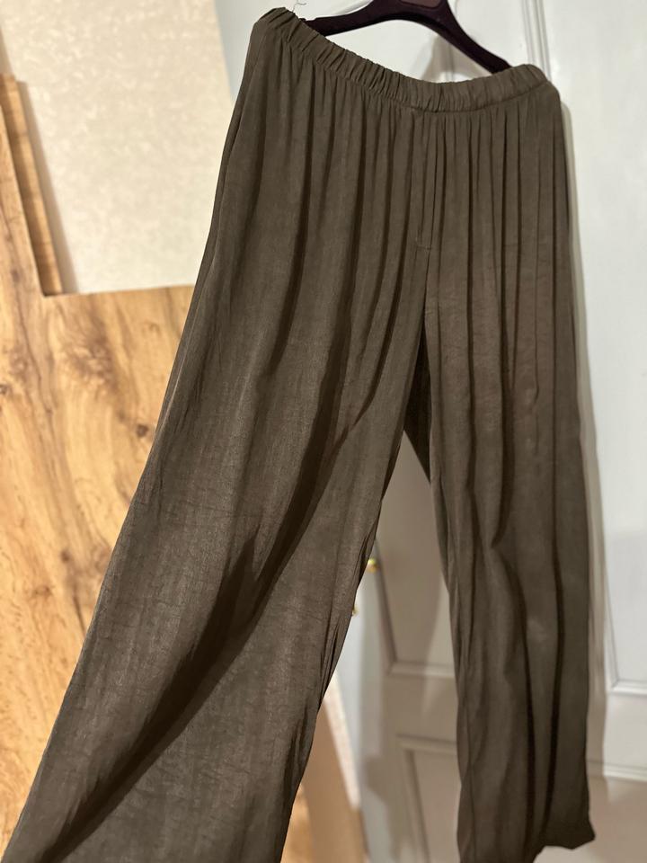Лёгкий материал, приятный к телу — идеально на каждый день. Удобная посадка на резинке. Есть карманы. Свободный крой красиво садится по фигуре и не сковывает движения. Базовый коричневый оттенок легко сочетается с любым гардеробом. Крой свободный, поэтому подойдут на размер S, M, L в зависимости от желаемой посадки Артикул: 561546