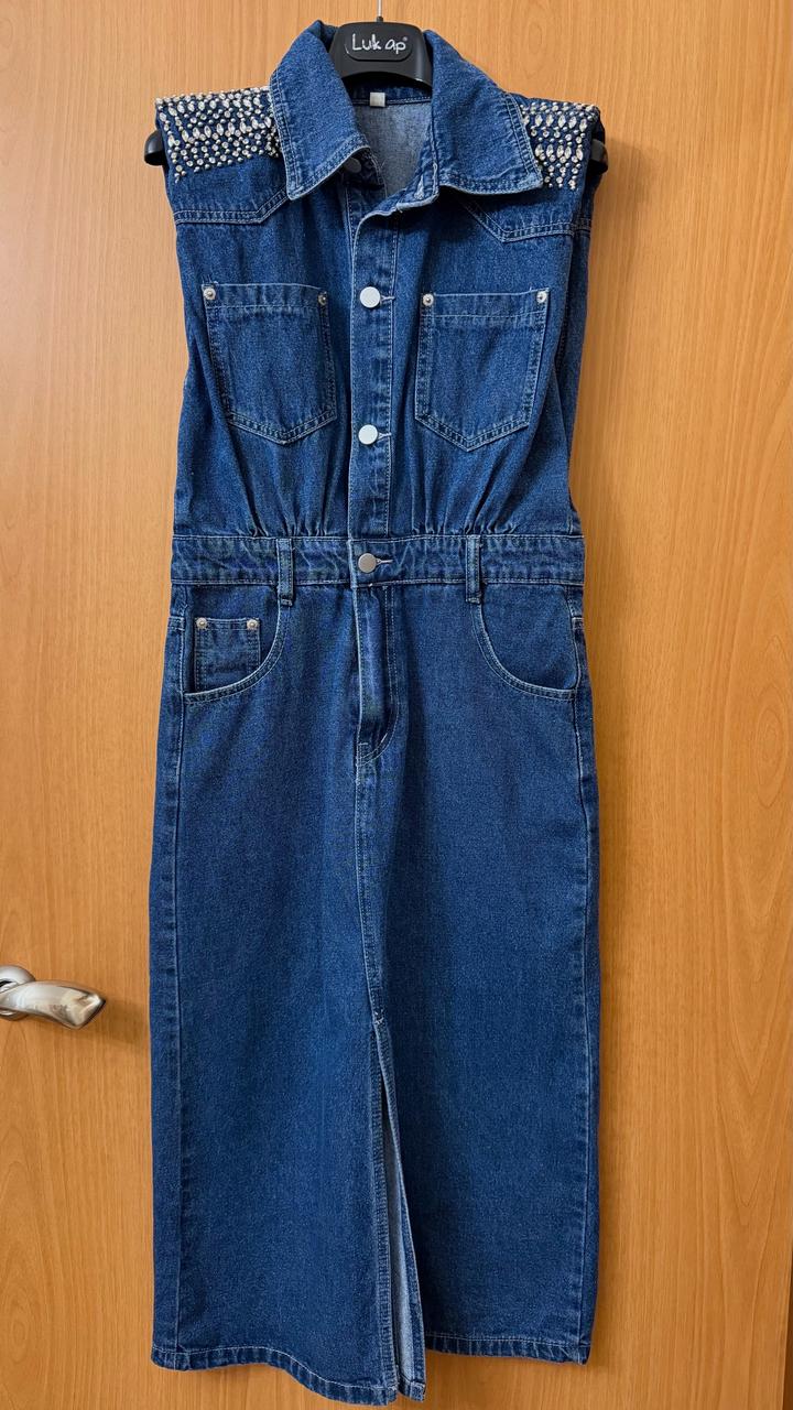 Джинсовое платье, идеального качества, приталенное , к низу чуть расширена модель , разрезы впереди и сзади , длина миди Артикул: 561612