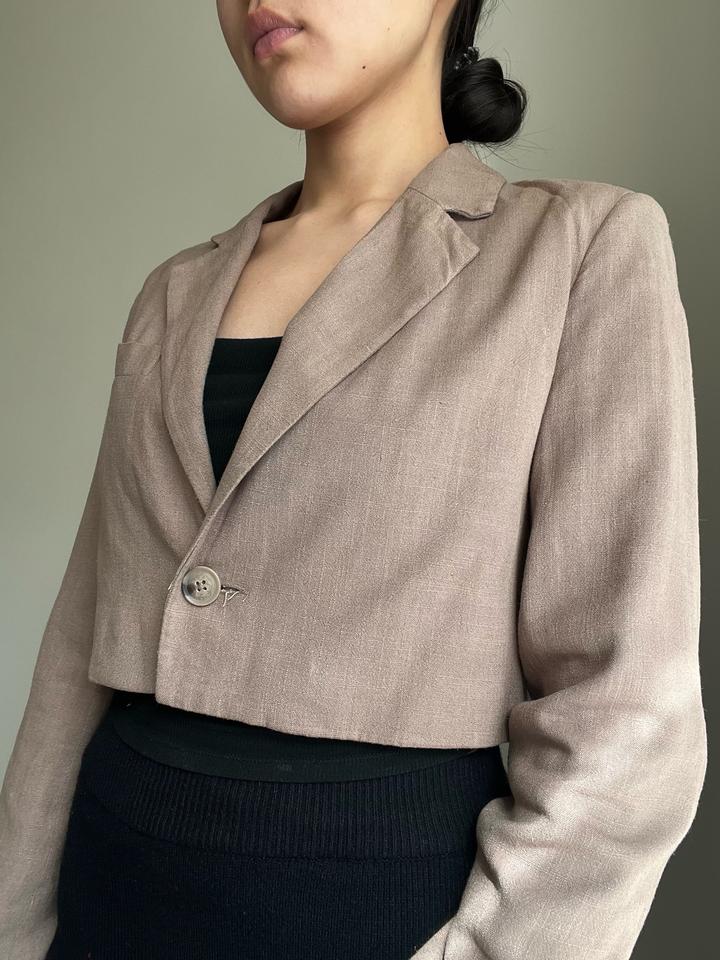 Укороченный коричнево-бежевый пиджак из Stradivarius в размере М,подойдет и на размер S.Носила один раз,без дефектов. Легкий материал,подойдет на весну-лето. Артикул: 561617