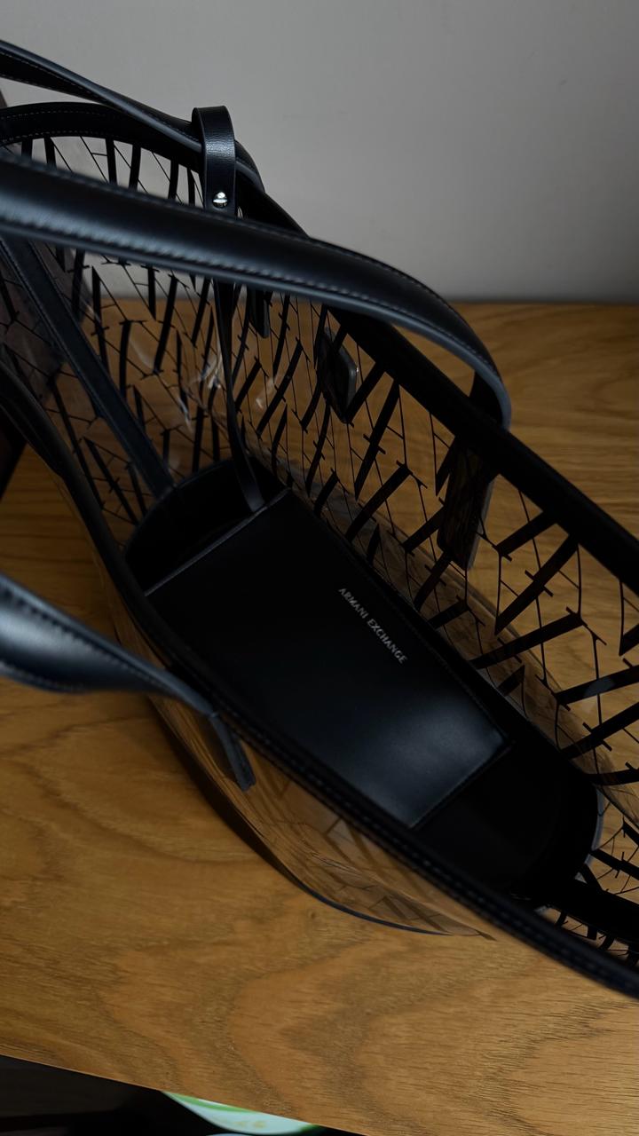 Новая сумка Armani exchange, не носилась, с биркой прозрачный шоппер с кожаными элементами Артикул: 561655