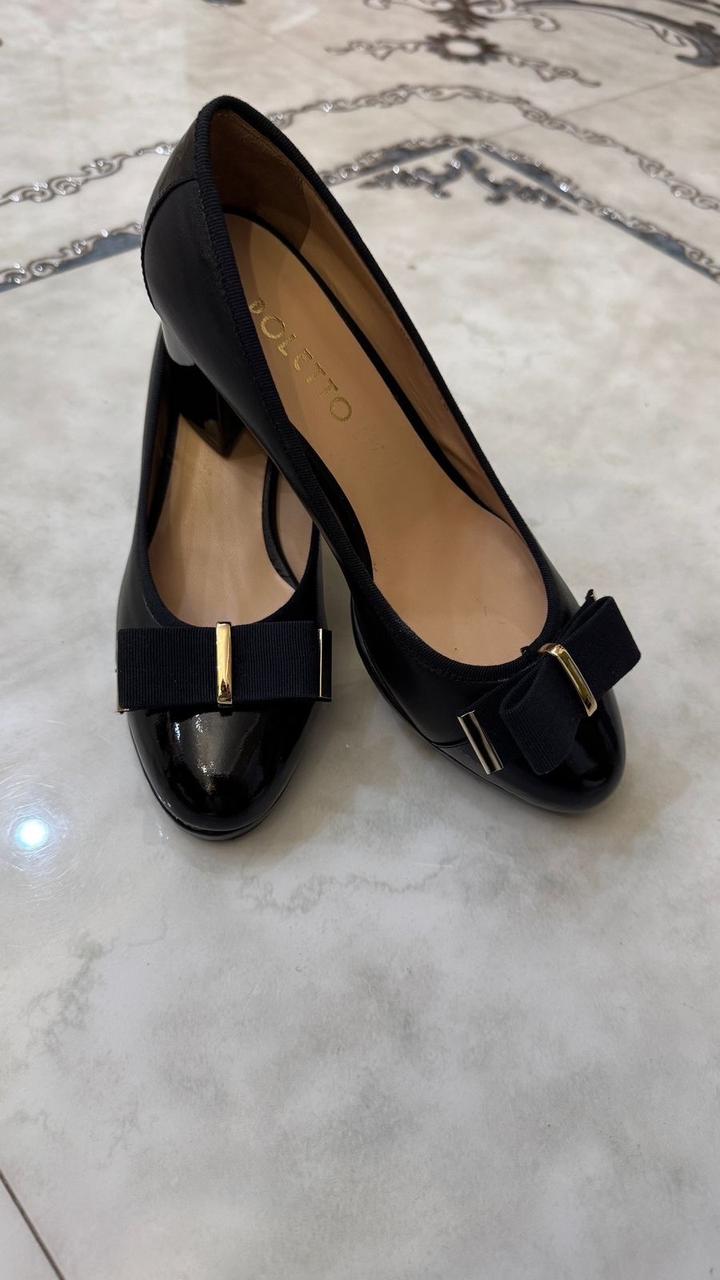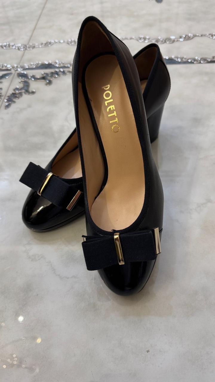 Продам стильные женские туфли бренда Poletto. Туфли в классическом черном цвете. • Состояние: новые • Удобный устойчивый каблук • Аккуратный бантик с золотистой фурнитурой • Комфортная колодка — можно носить весь день • размер 38 Туфли выглядят аккуратно и дорого, легко сочетаются с любым гардеробом. Артикул: 561745